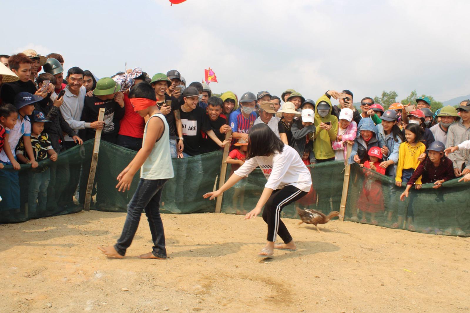 Ngay sau phần lễ là chương trình văn nghệ và các trò chơi truyền thống như kéo co, chọi gà, kéo vật, bịt mắt bắt vịt, bắt lợn... thu hút hàng nghìn người tham gia. Ảnh: HY