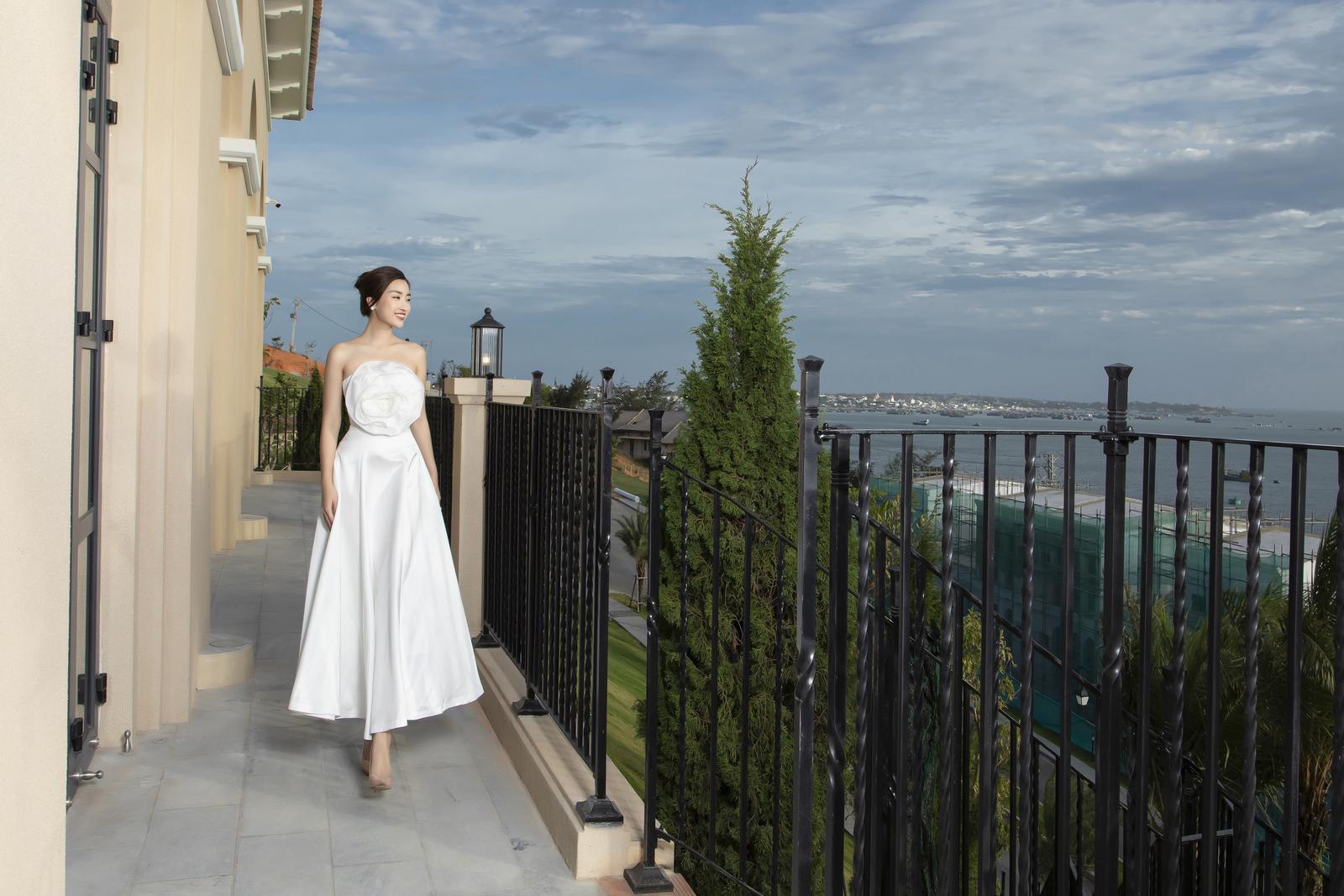 Khu Welcome Center mang phong cách Địa Trung Hải lãng mạn và sang trọng trở thành sàn diễn hoàn hảo để nàng hậu khoe dáng ngọc trong nhiều trang phục kiều diễm. Kiến trúc vòm cong đặc trưng của phong cách Tây Ban Nha cùng cửa sổ rộng lớn bao trọn tầm nhìn từ phía đồi ra vịnh biển xanh mát khiến Đỗ Mỹ Linh ngỡ ngàng như đang lạc vào một thành phố trời Âu cổ kính hoa lê.