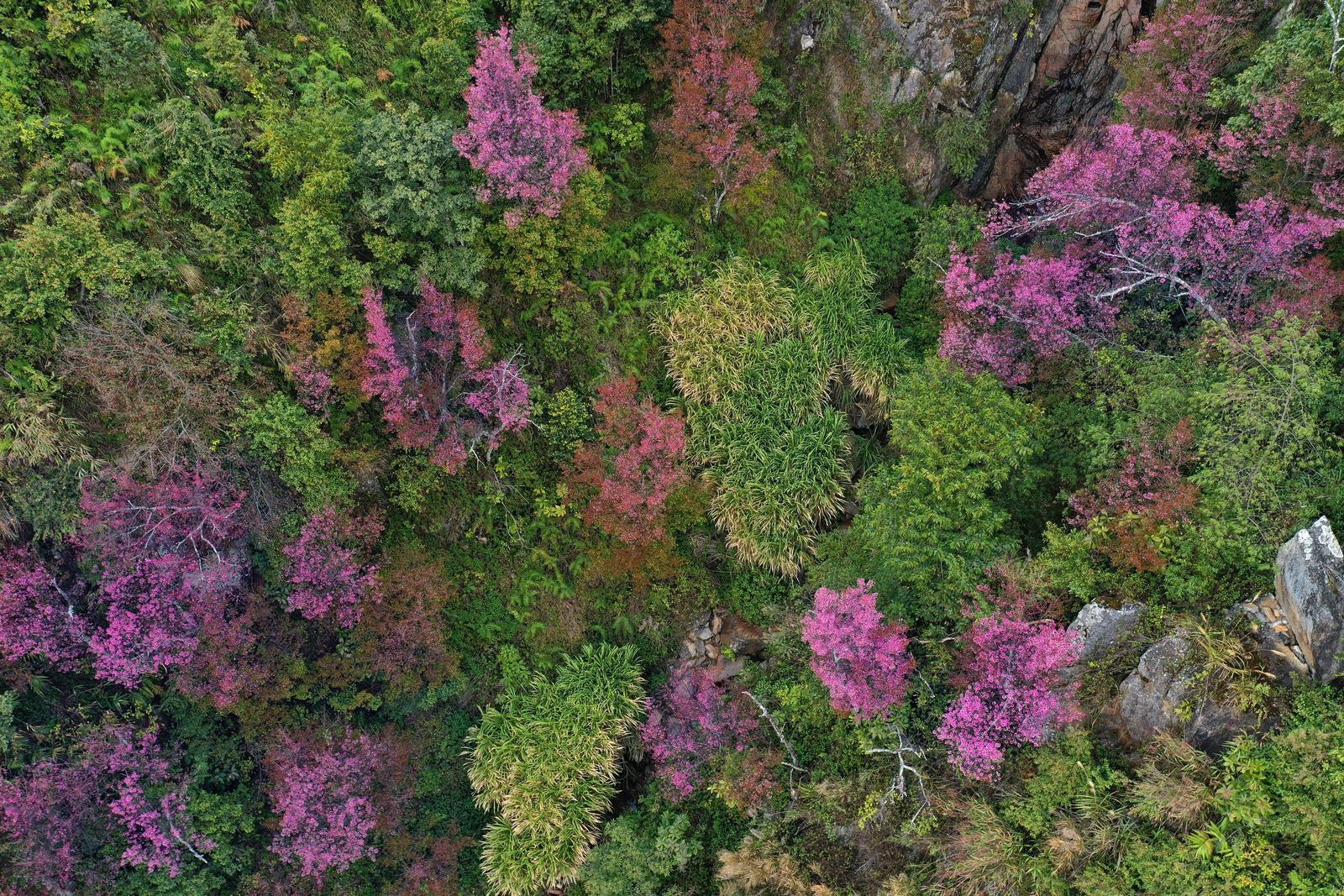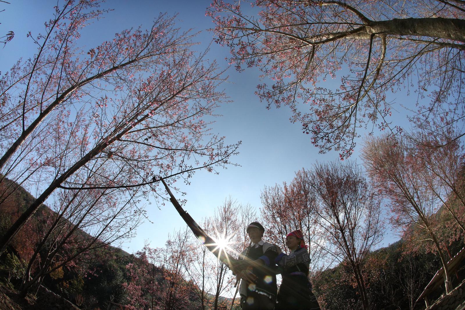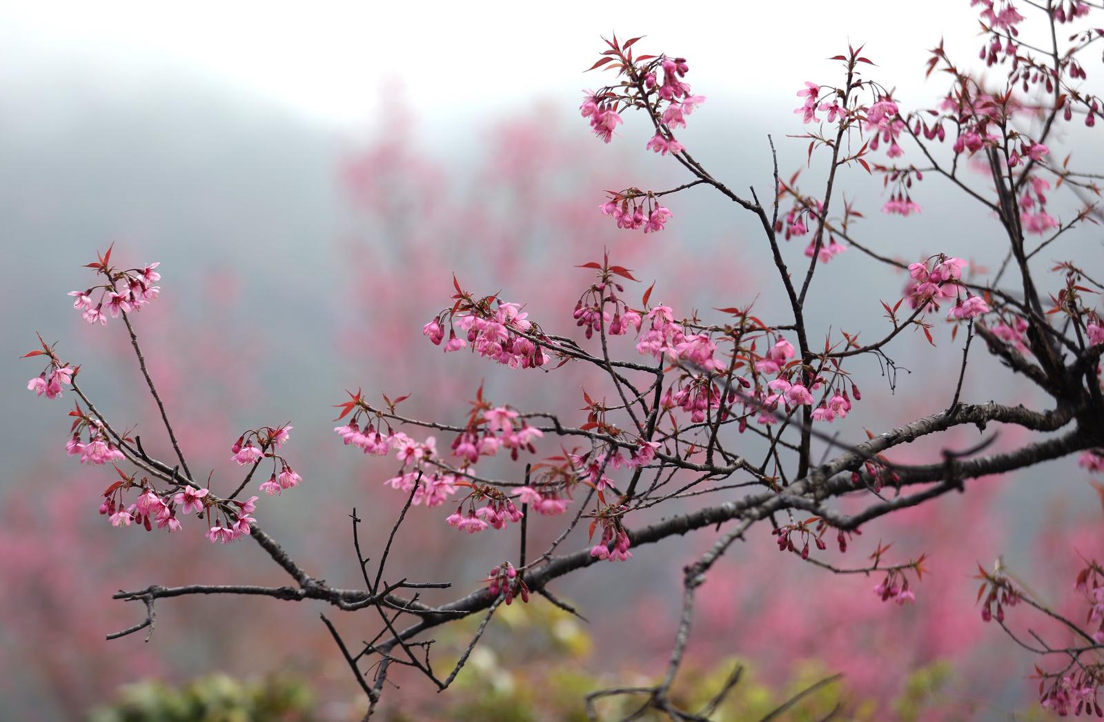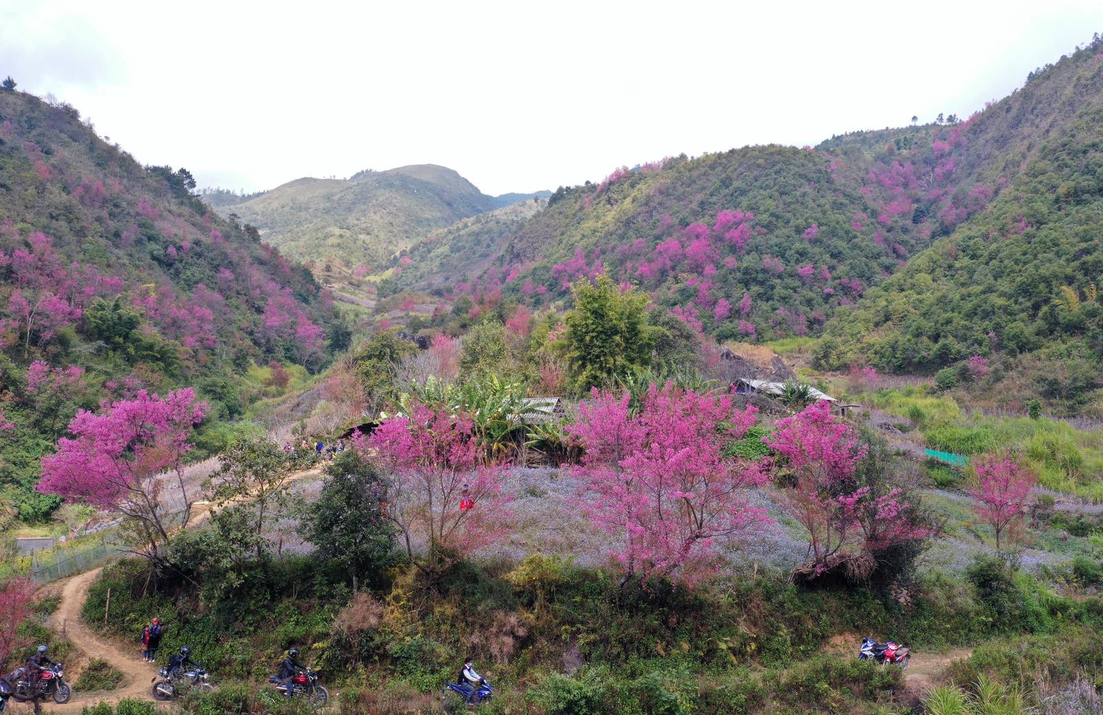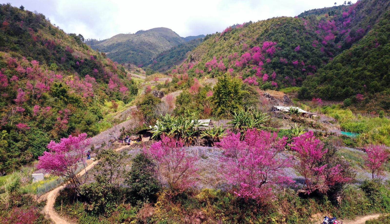 (Thanh tra) - Lên Mù Cang Chải mùa này, du khách có cơ hội chiêm ngưỡng những cây hoa Tớ Dày (hoa đào rừng) với vẻ đẹp thuần khiết, sắc hồng lung linh trong nắng Xuân. Những chùm hoa sắc màu đỏ hồng ở lưng chừng đồi tạo nên một bức tranh thiên nhiên tuyệt đẹp.