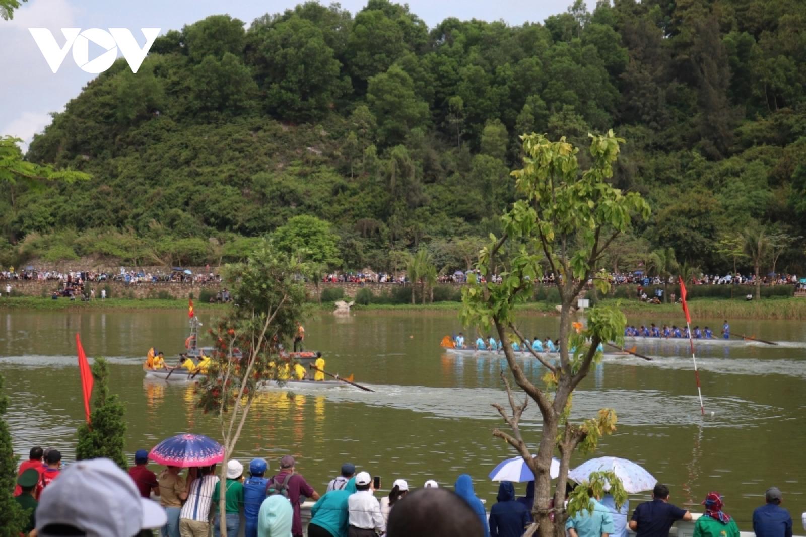 Sáng 30/4, UBND quận Đồ Sơn đã tổ chức “Lễ hội đua thuyền rồng trên biển” tại hồ nước ngọt - Khu Du lịch Quốc tế Đồi Rồng.