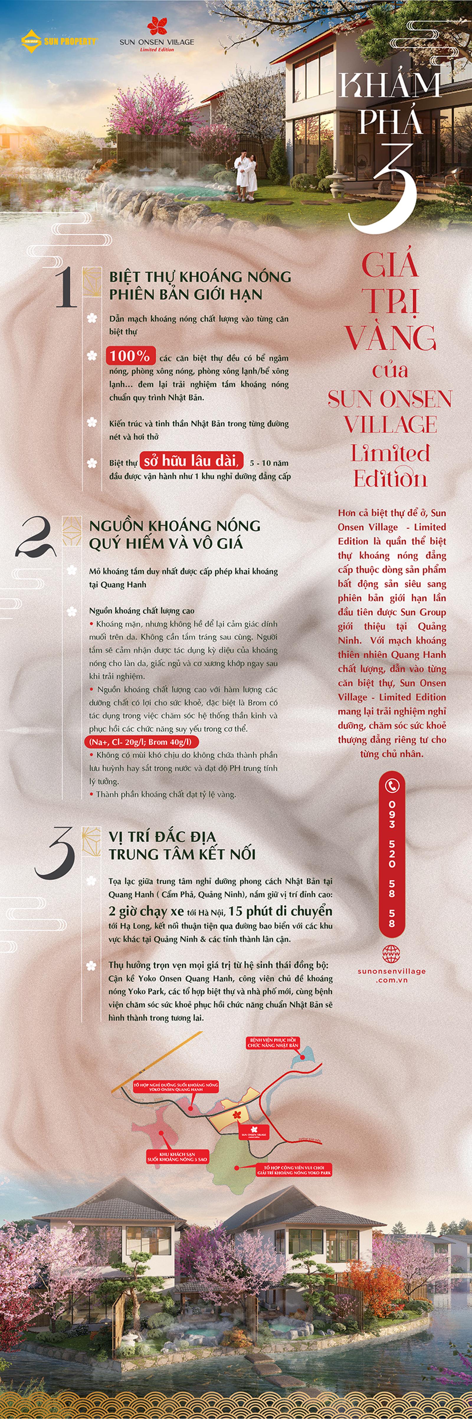(Thanh tra) - Hơn cả biệt thự để ở, Sun Onsen Village - Limited Edition là quần thể biệt thự khoáng nóng đẳng cấp thuộc dòng sản phẩm bất động sản siêu sang phiên bản giới hạn lần đầu tiên được Sun Group giới thiệu tại Quảng Ninh.