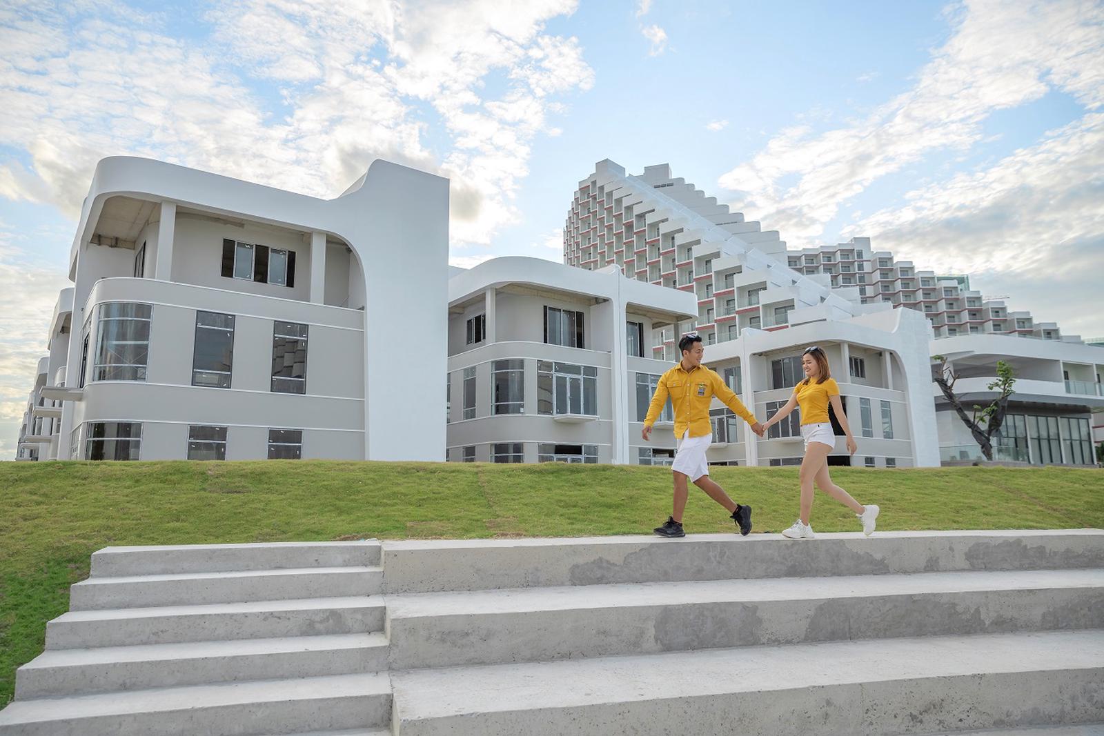 Không gian resort thông thoáng với rất nhiều mảng xanh, các con đường nội khu xanh mát, đồi cỏ bao la hoàn toàn lý tưởng cho những buổi dã ngoại, chụp ảnh ngoài trời dành cho cặp đôi, nhóm bạn, gia đình.