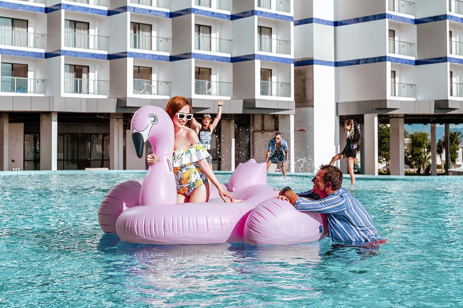 Mỗi tòa nhà trong khu nghỉ dưỡng đều ôm trọn những hệ hồ bơi được thiết kế theo những cảm hứng riêng. Đáng chú ý là hệ bể bơi liên hoàn bao gồm hồ jaccuzi, hồ bơi tiêu chuẩn, các hồ cảnh quan, hồ nước mặn, thác tràn và sông lười với 100% tầm nhìn trực diện vịnh biển Cam Ranh. Đây cũng chính là dòng sông lười sát biển duy nhất tại khu vực Bãi Dài.