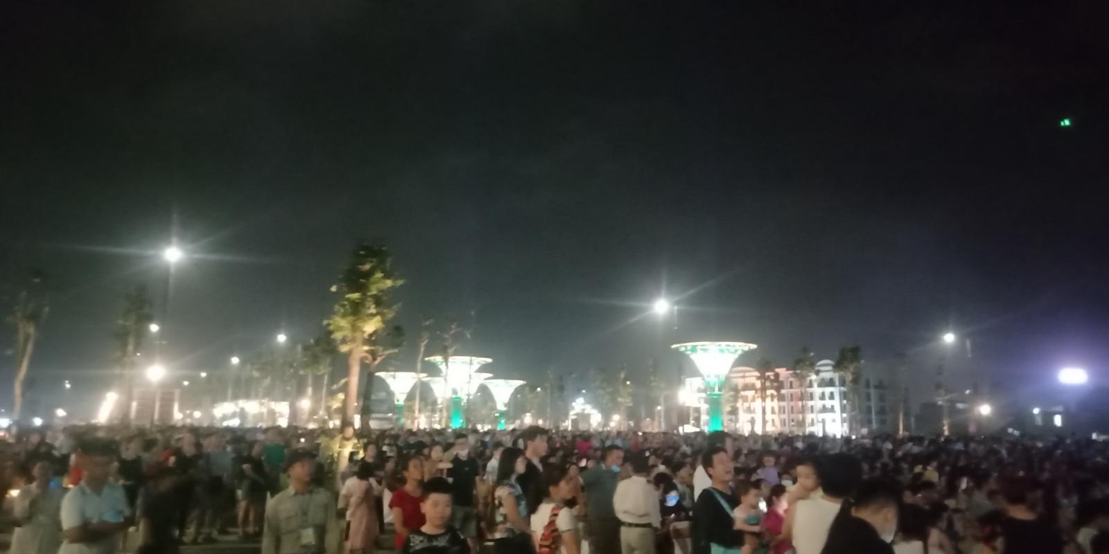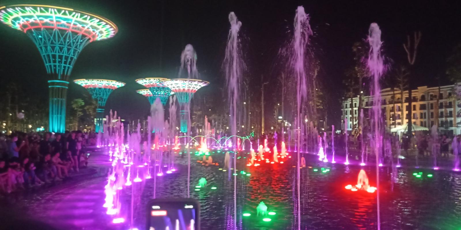 Nhạc nước ở Quảng trường Sầm Sơn thu hút sự thích thú của du khách. Ảnh: VT