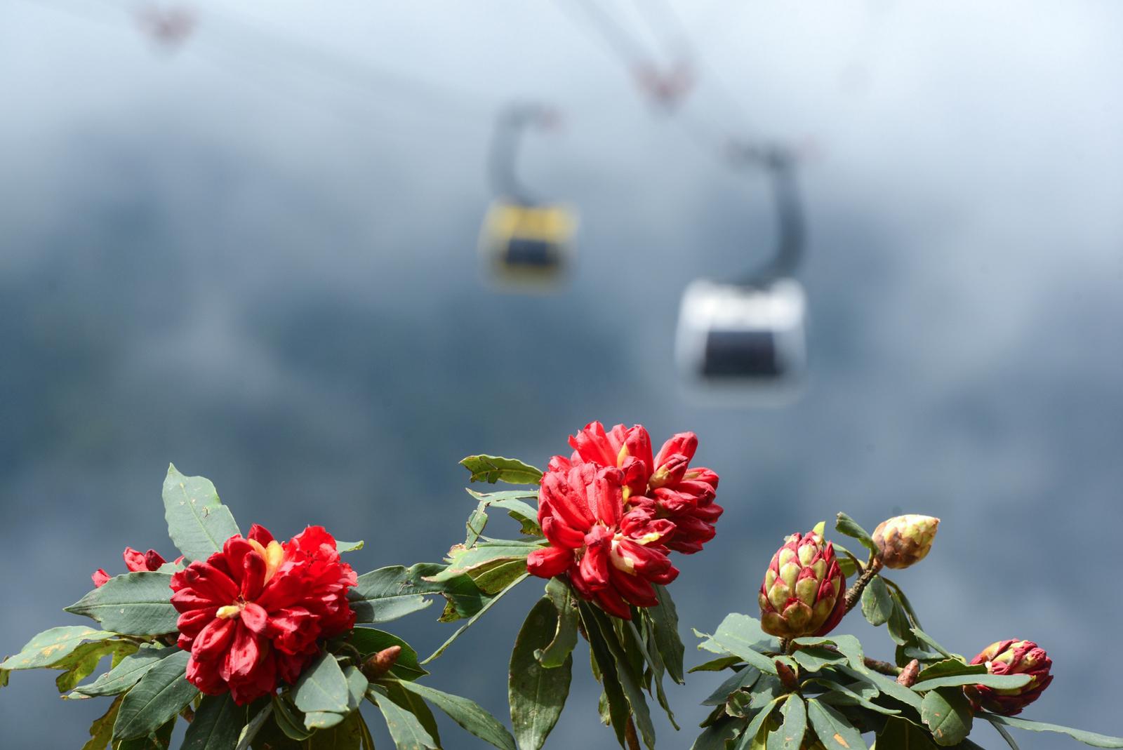Để mang hoa đỗ quyên đến gần hơn với du khách, Khu du lịch Fansipan Legend thiết kế hai bức tường được kết bởi hàng trăm cây hoa đỗ quyên đủ màu sắc, chủng loại. Tại ga đến cáp treo, những chậu hoa đỗ quyên được đặt khắp nơi, dọc theo 600 bậc thang tới nóc nhà Đông Dương. Ngay khi tới đỉnh cao 3.143 mét, du khách được chiêm ngưỡng những bông đỗ quyên đỏ thắm như mọc lên từ đá – từ những gốc đỗ quyên cổ thụ đã được Ban quản lý khu du lịch bảo tồn, gìn giữ, đang vươn mình trong thời tiết khắc nghiệt để bung nở rực rỡ. Không chỉ vậy, từ trên cao sẽ thấy những thảm hoa nhiều màu khi cả vùng rừng già Hoàng Liên đang vào mùa đỗ quyên nở.
