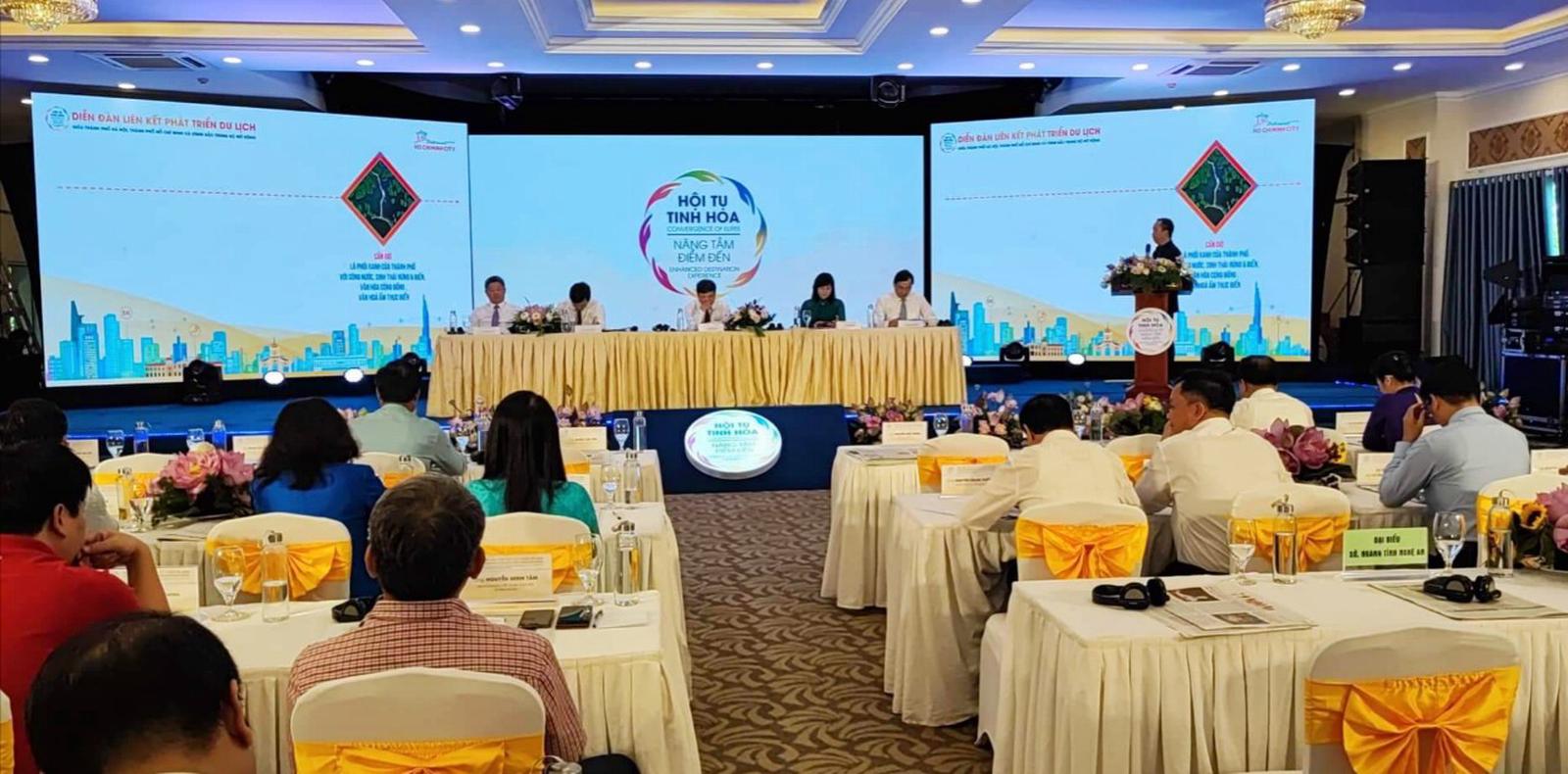 (Thanh tra)- Chiều 1/7, tại TP Vinh đã diễn ra diễn đàn liên kết phát triển du lịch giữa TP HCM, TP Hà Nội và vùng Bắc Trung bộ mở rộng, với chủ đề "Hội tụ tinh hoa - Nâng tầm điểm đến". Tham dự có Thứ trưởng Bộ Văn hóa, Thể thao & Du lịch Đoàn Văn Việt; lãnh đạo các tỉnh, thành; đại diện Hội đồng Tư vấn du lịch, Hiệp hội Du lịch Việt Nam, Hiệp hội Doanh nghiệp châu Âu (Eurocham)...