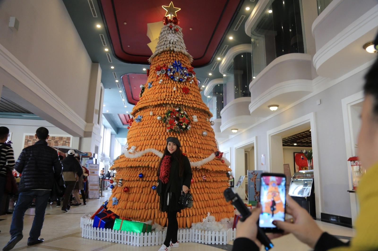 Đặc biệt ngay từ cổng vào, cây thông khổng lồ cao 18,88m được thắp sáng bởi hàng ngàn ngọn đèn led đủ màu, trang hoàng bằng những bông tuyết lung linh đủ hình dáng sẽ giúp bạn có những bức hình ai cũng phải ghen tị…