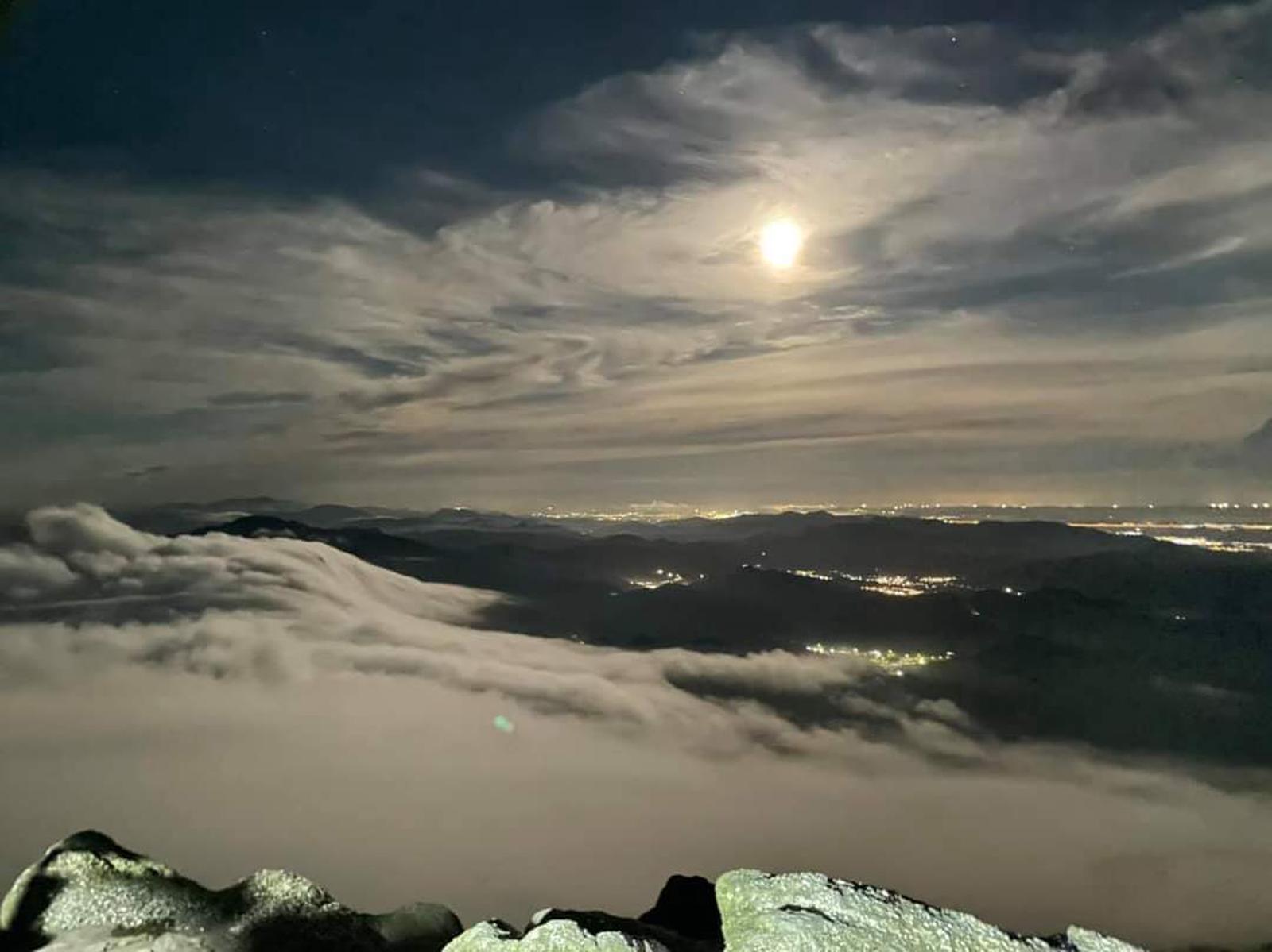 Có lúc ánh trăng hoà vào mây trắng tạo nên một tiên cảnh giữa không trung núi rừng Yên Tử. Ảnh: Đăng Nguyệt