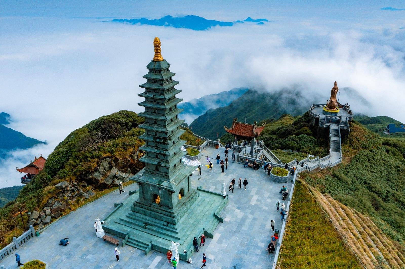 Còn trong ngày 1/1/2023, du khách thực sự thích thú khi chỉ cần vượt qua tầng mây mù bằng cáp treo lên tới đỉnh Fansipan, trời đã trong, biển mây cuồn cuộn chảy. Ngắm những tiểu cảnh mùa đông đậm nét văn hóa Tây Bắc, trải nghiệm ngắm núi non kỳ vĩ từ Nóc nhà Đông Dương hay chiêm bái quần thể tâm linh, chụp hình đánh dấu khoảnh khắc chinh phục đỉnh Fansipan bên chóp tháp hay nơi cột cờ cao nhất Đông Dương… những niềm vui trên đỉnh Fansipan khắc họa một năm mới rực rỡ đang chờ đón phía trước, với những ai có may mắn chạm tới đỉnh thiêng ở thời khắc này.
