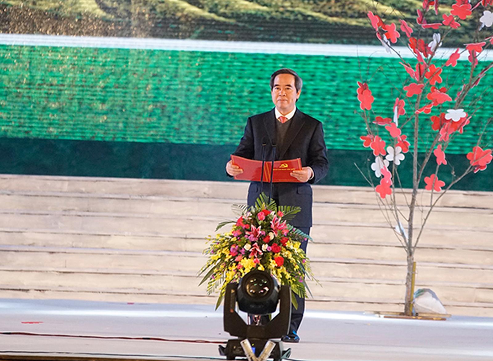 Đồng chí Nguyễn Văn Bình, Bí thư TƯ Đảng, Trưởng Ban Kinh tế TƯ, Trưởng Ban Chỉ đạo Tây Bắc phát biểu tại buổi lễ. Ảnh: LC