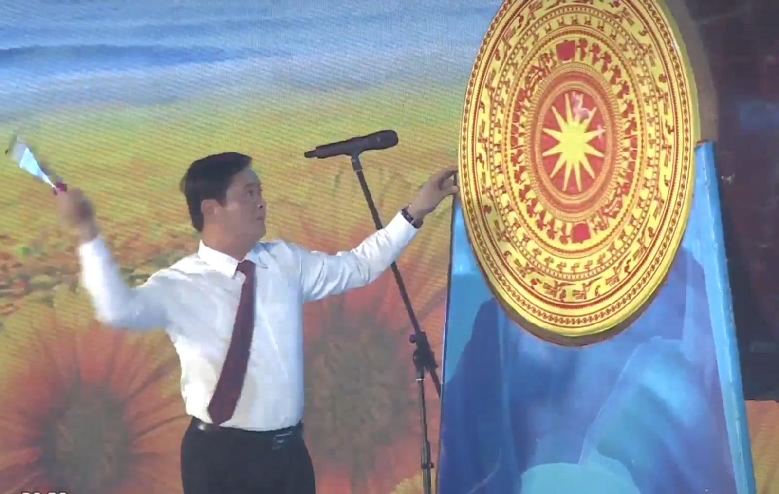 Ông Thái Thanh Qúy - Bí thư Tỉnh ủy đánh trống khai hội. Ảnh: XT