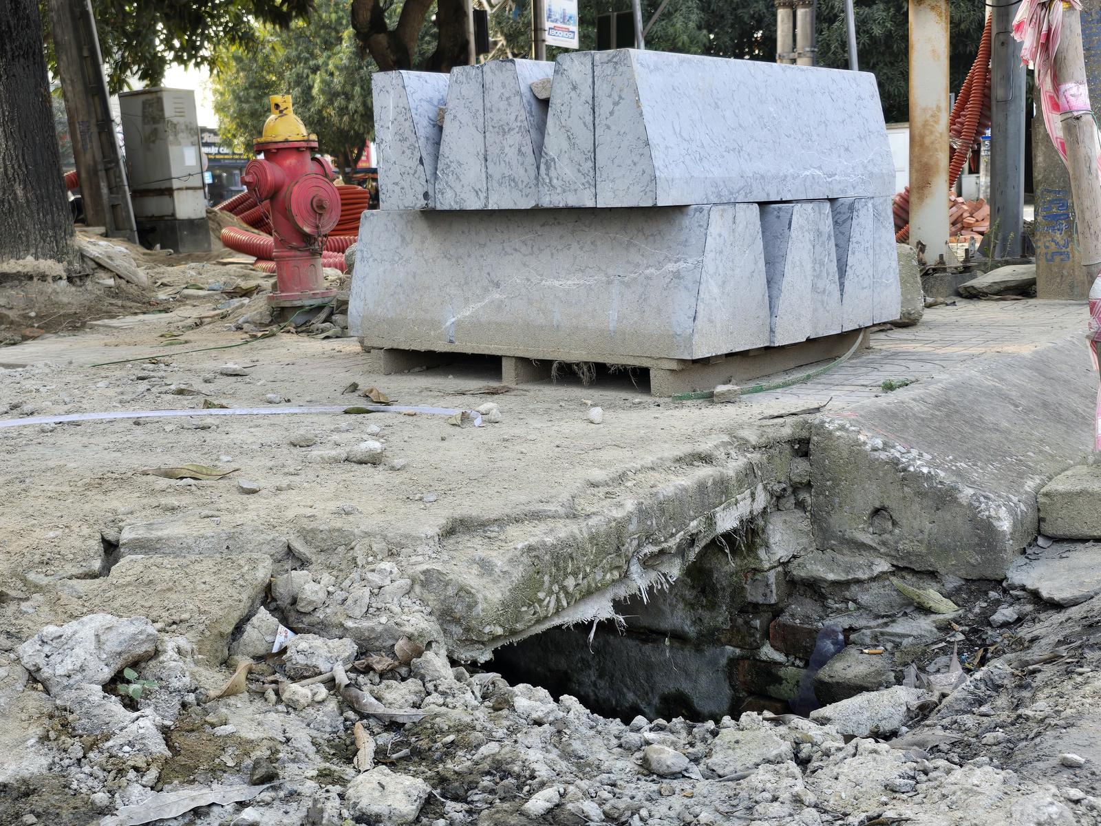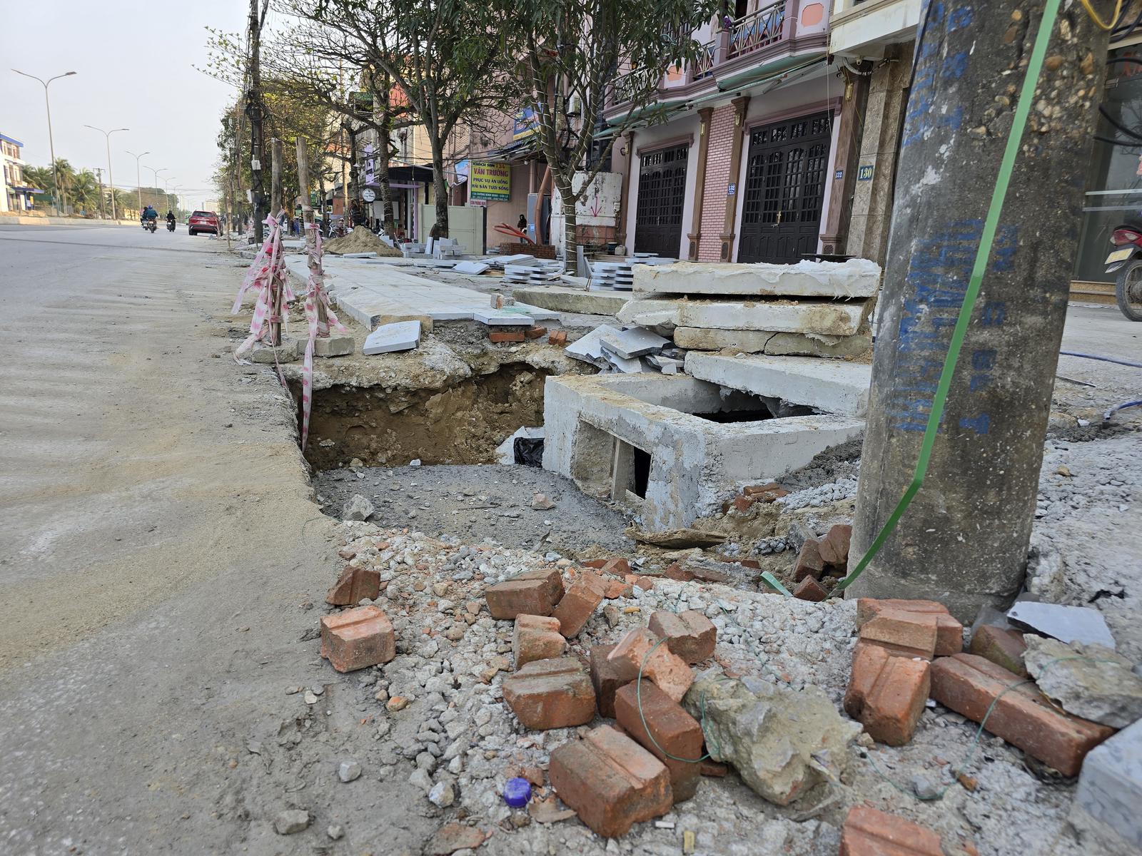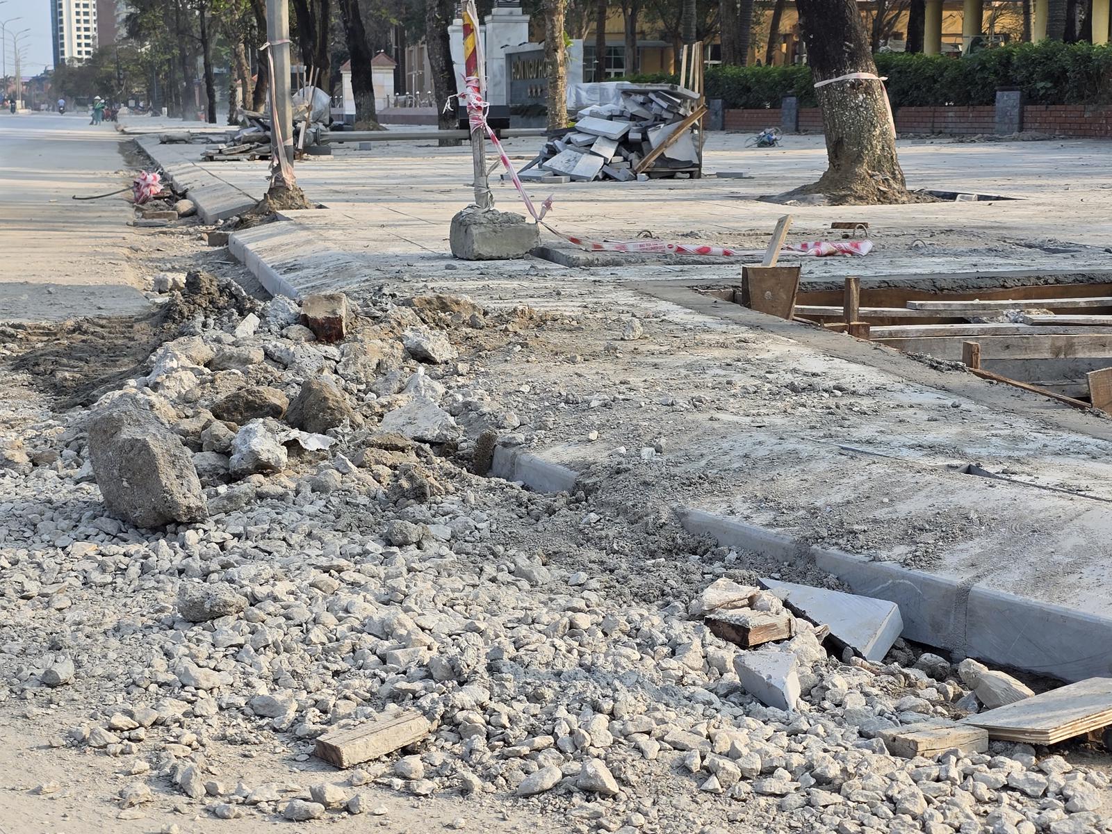 Phía đường mặt biển, mặc dù đơn vị thi công đã có cảnh báo, chắn đường để thi công, tuy nhiên, phía đường đối diện lại diễn ra cảnh nhếch nhác, nhiều điểm không có biển cảnh báo, thậm chí bị đào bới tứ tung. Đất, đá, gạch đổ khắp nơi; nhiều điểm hố ga, rãnh thoát nước đang được thi công đều không có biển cảnh báo, rất nguy hiểm cho người đi đường.