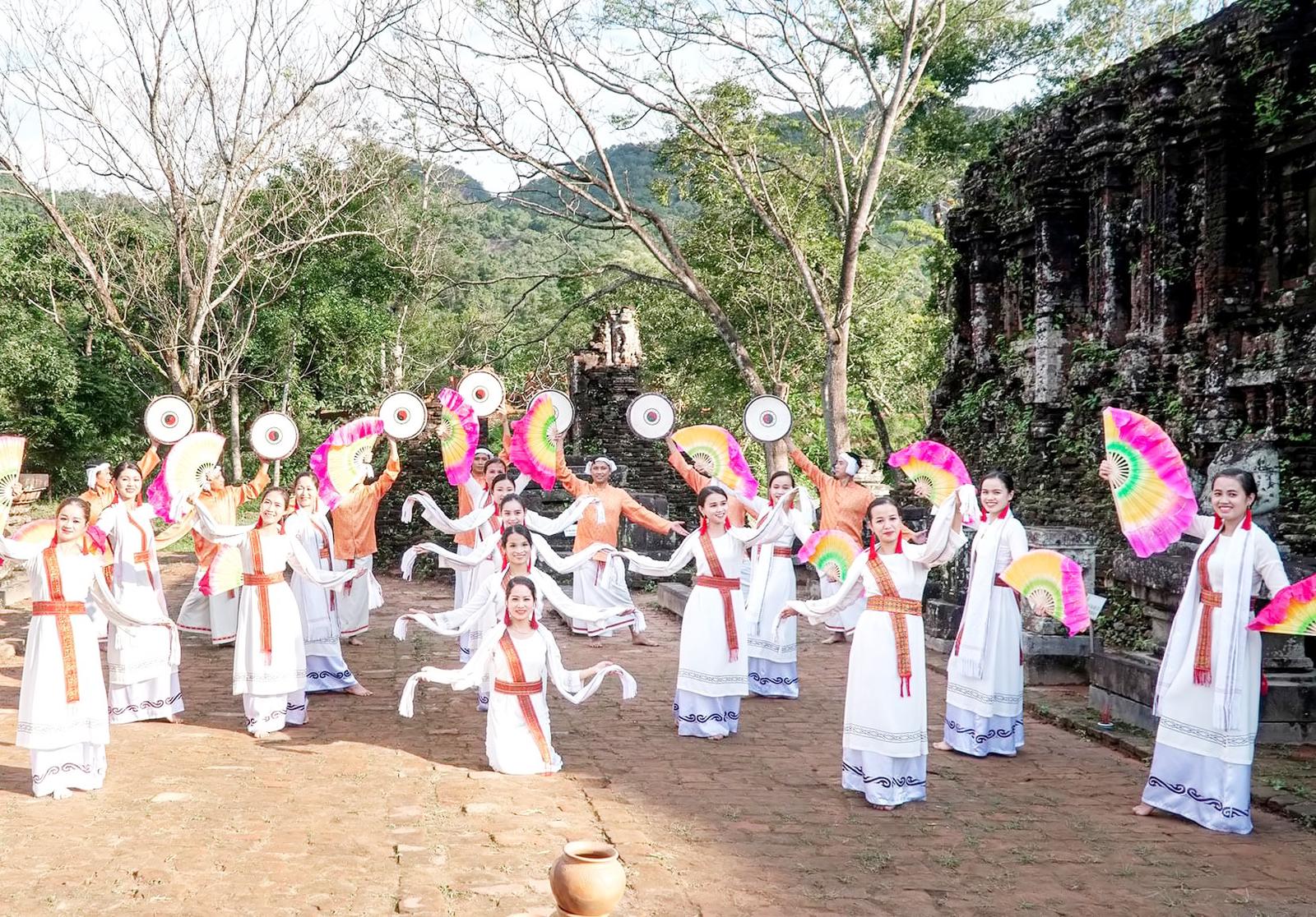 Biễu diễn nghệ thuật Chăm tại Thánh địa Mỹ Sơn. Ảnh: P.B