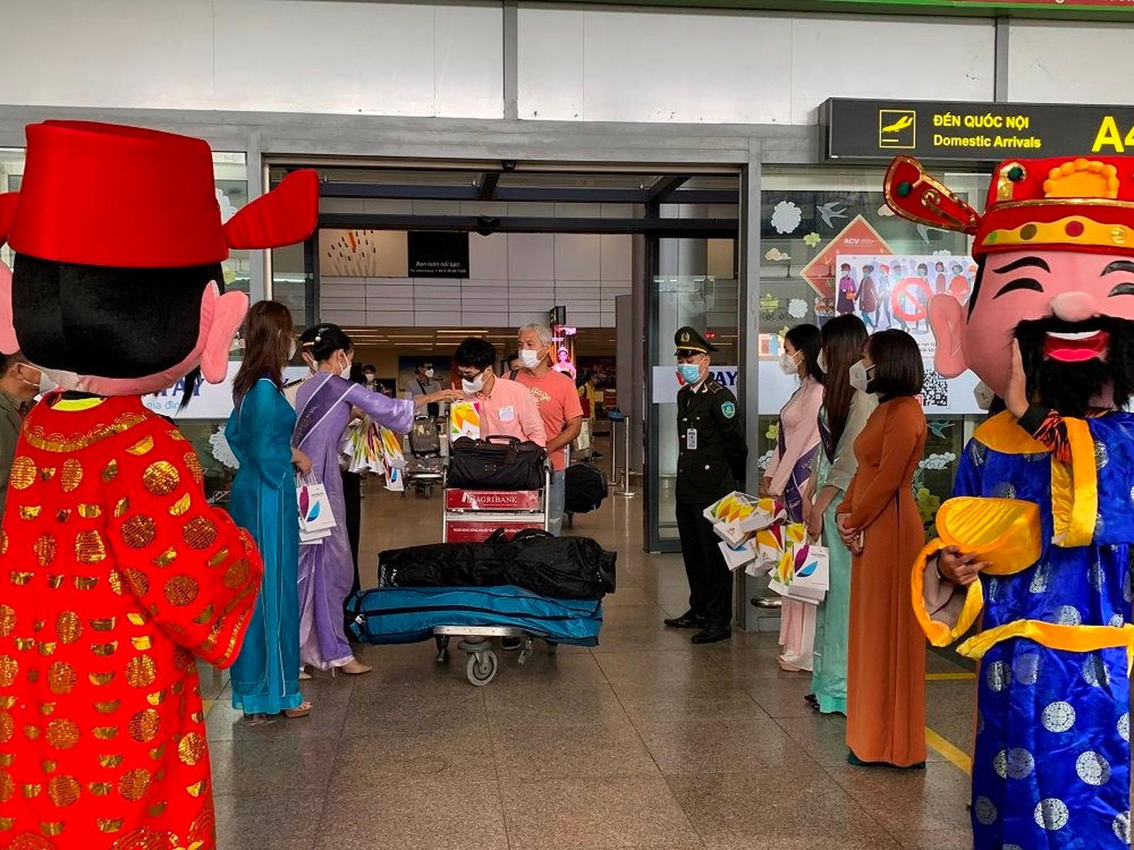 Tại Đà Nẵng, ngày đầu tiên của năm mới Nhâm Dần, Sở Du lịch TP cùng Cảng Hàng không Quốc tế Đà Nẵng và Cty Cổ phần Truyền thông Rồng Tiên Sa đã tổ chức đón 230 hành khách đi trên chuyến bay mang số hiệu VJ.624 đến từ TP HCM, trong đó có 26 khách quốc tế đáp xuống Sân bay Đà Nẵng.