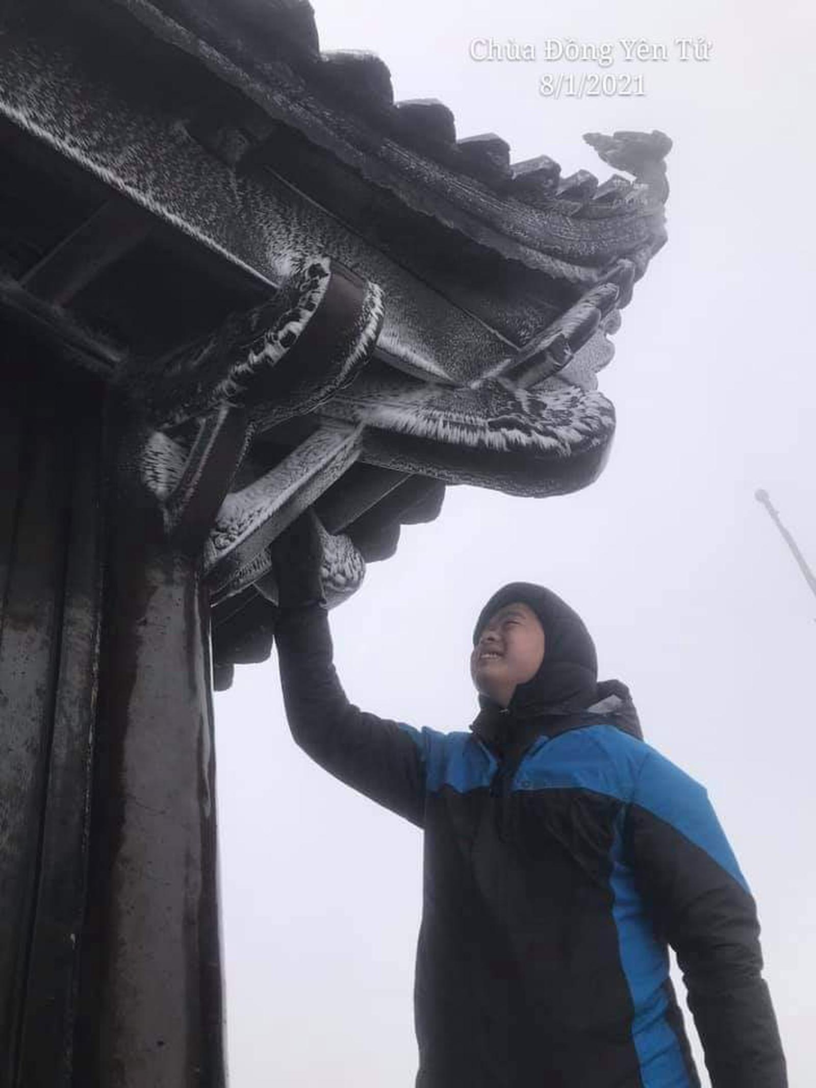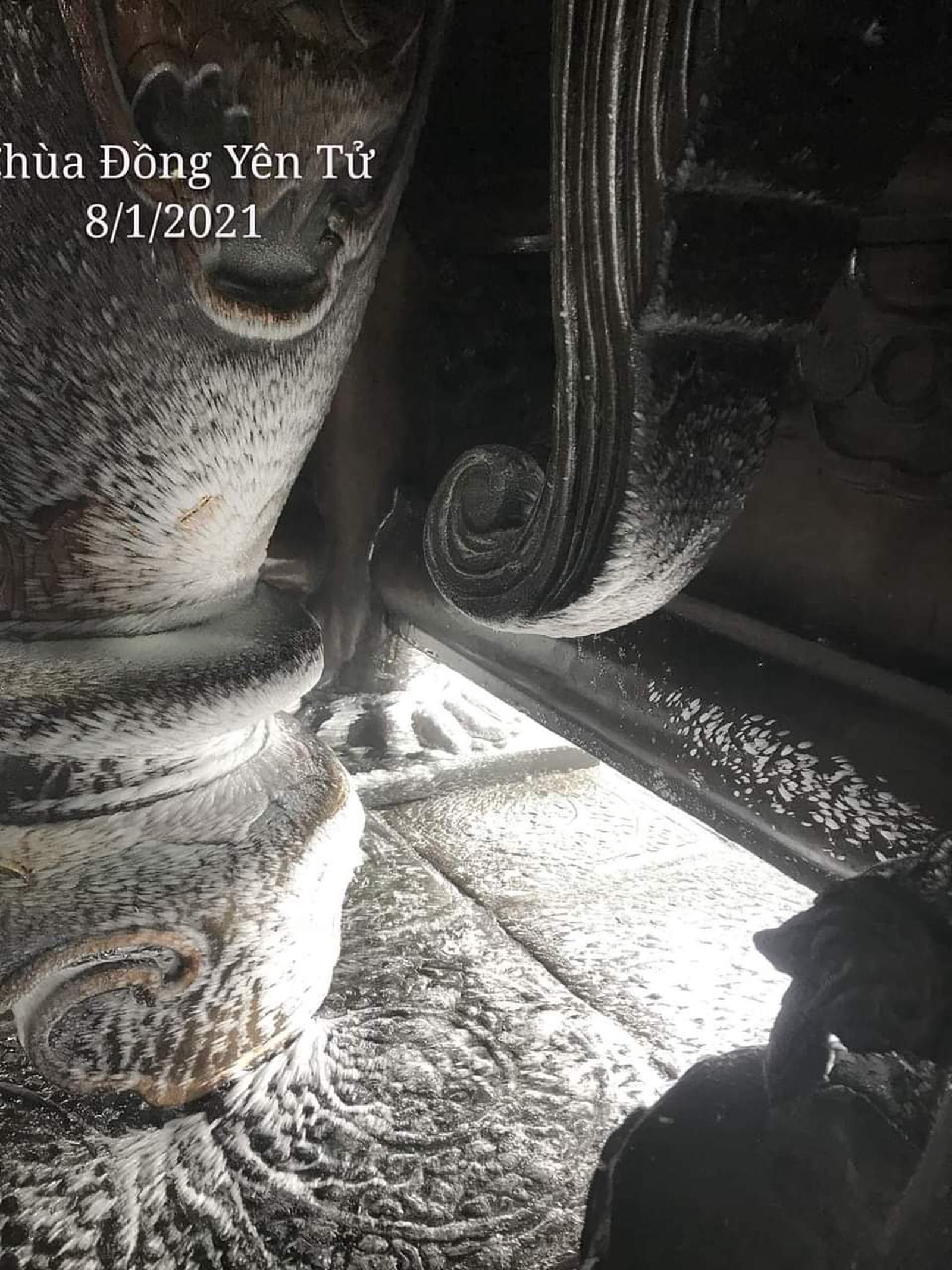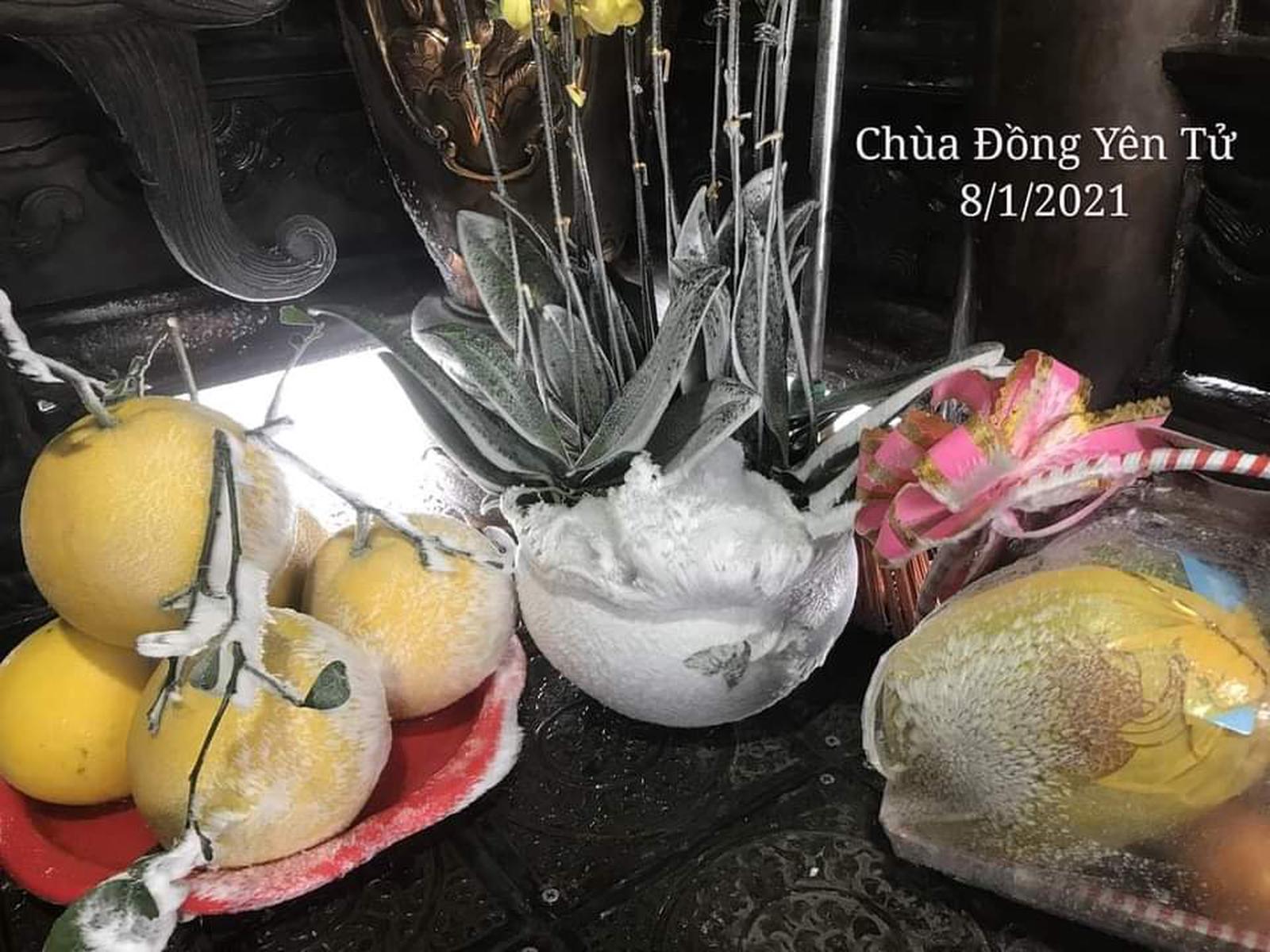 Chùa Đồng xuất hiện băng tuyết vào sáng nay, 8/1. Ảnh: Chùa Yên Tử cung cấp