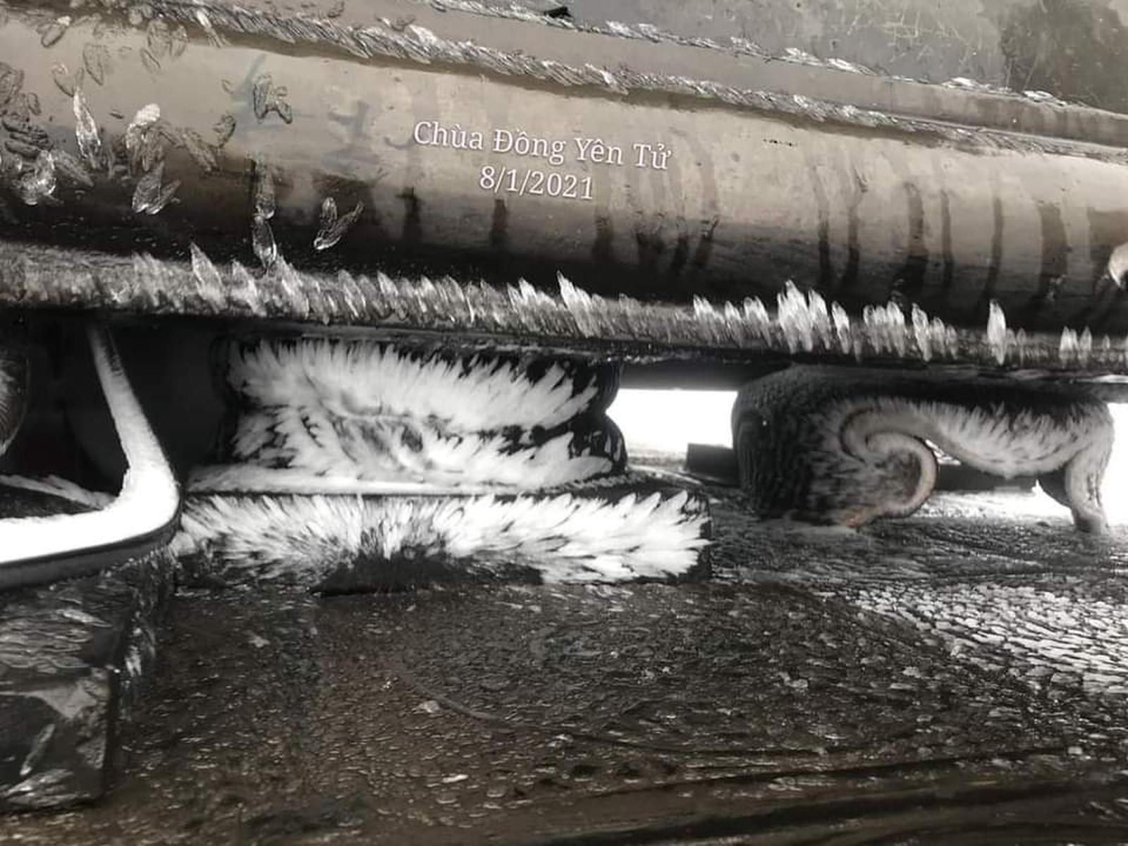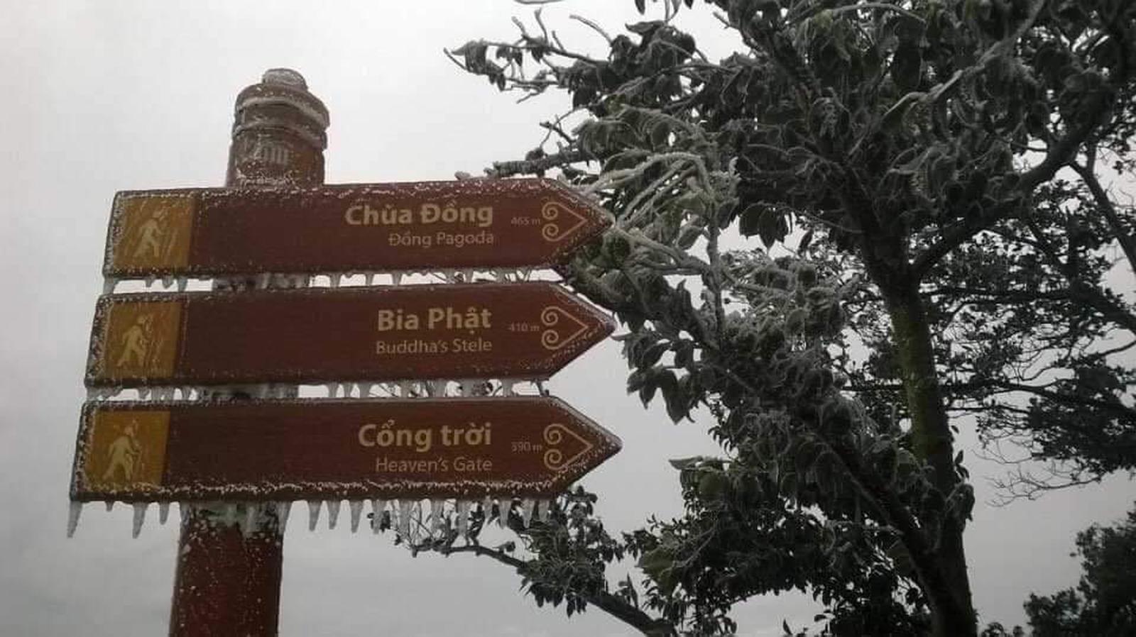 Tại khu vực chùa Đồng (danh thắng Yên Tử, TP Uông Bí, Quảng Ninh), nhiệt độ xuống 0 độ. Thời tiết sương mù kèm mưa, băng giá đã xuất hiện. Biển chỉ đường, hàng rào và lối lên gần chùa Đồng nước đã đóng băng.