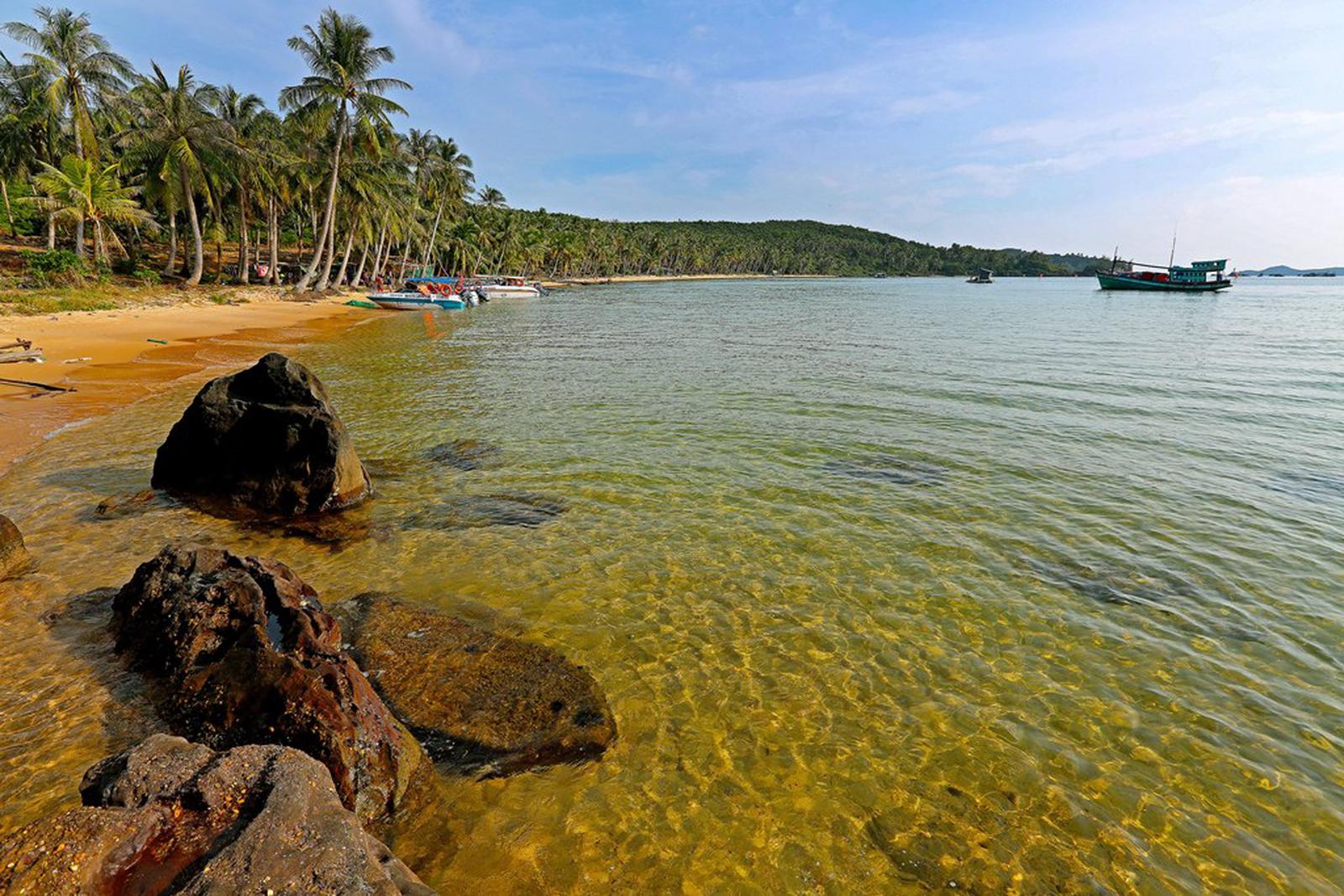 Mỗi hòn đảo ở Nam Phú Quốc đều sở hữu một bãi tắm mà khi đã chạm chân lên cát trắng, đã lùa chân đi dưới làn nước trong veo màu ngọc bích. Bãi Chào ở Hòn Thơm, điểm cuối của cáp treo, màu nước pha lê, những hàng dừa nghiêng nghiêng soi bóng, những trải nghiệm ẩm thực trên bãi biển mà nhà đầu tư đang tạo nên ở nơi này có thể đốn tim bất cứ tín đồ du lịch nào.