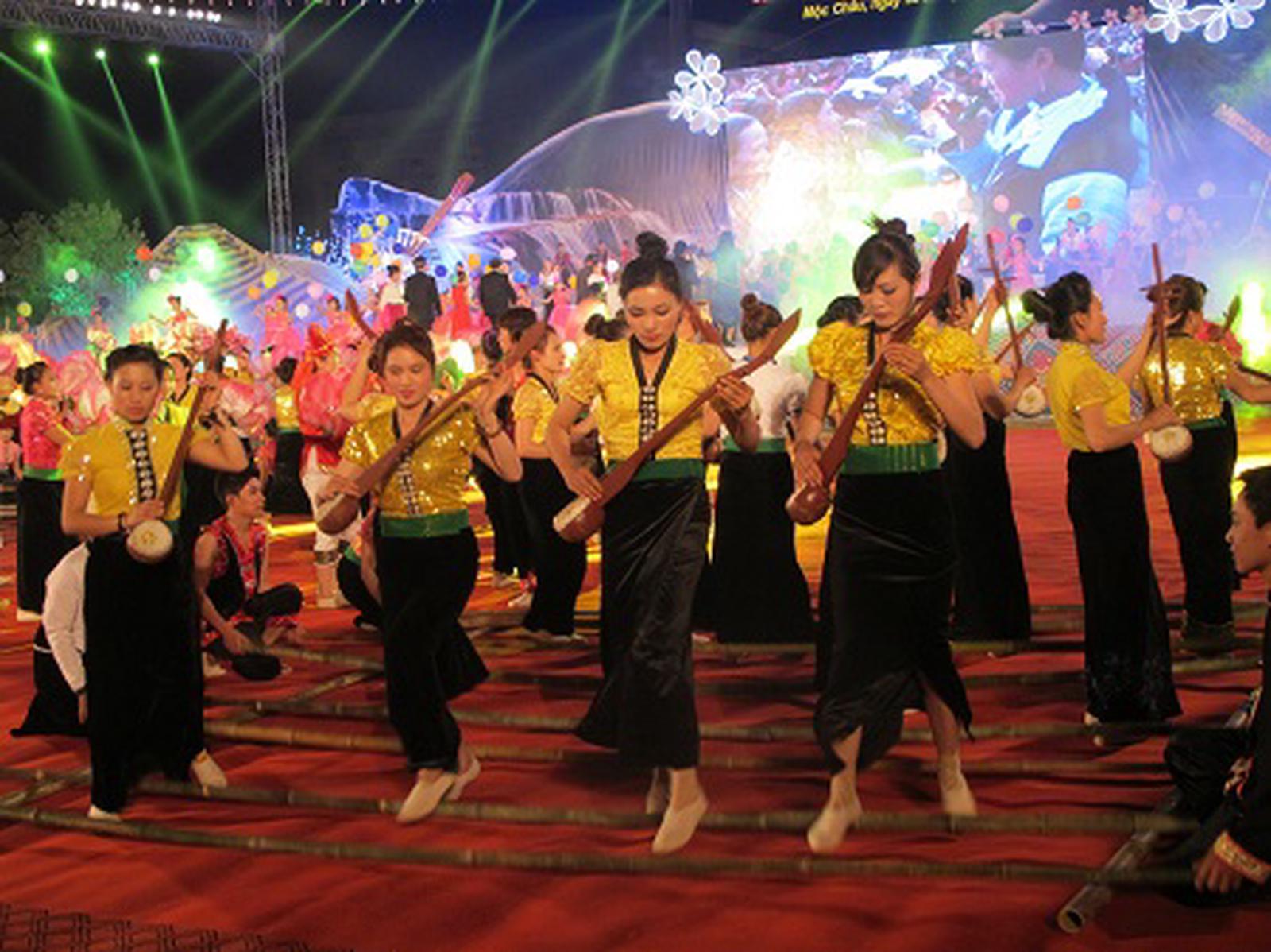 Múa sạp, nét văn hóa độc đáo, hút khách ở KDLQG Mộc Châu. Ảnh: Hồng Bài