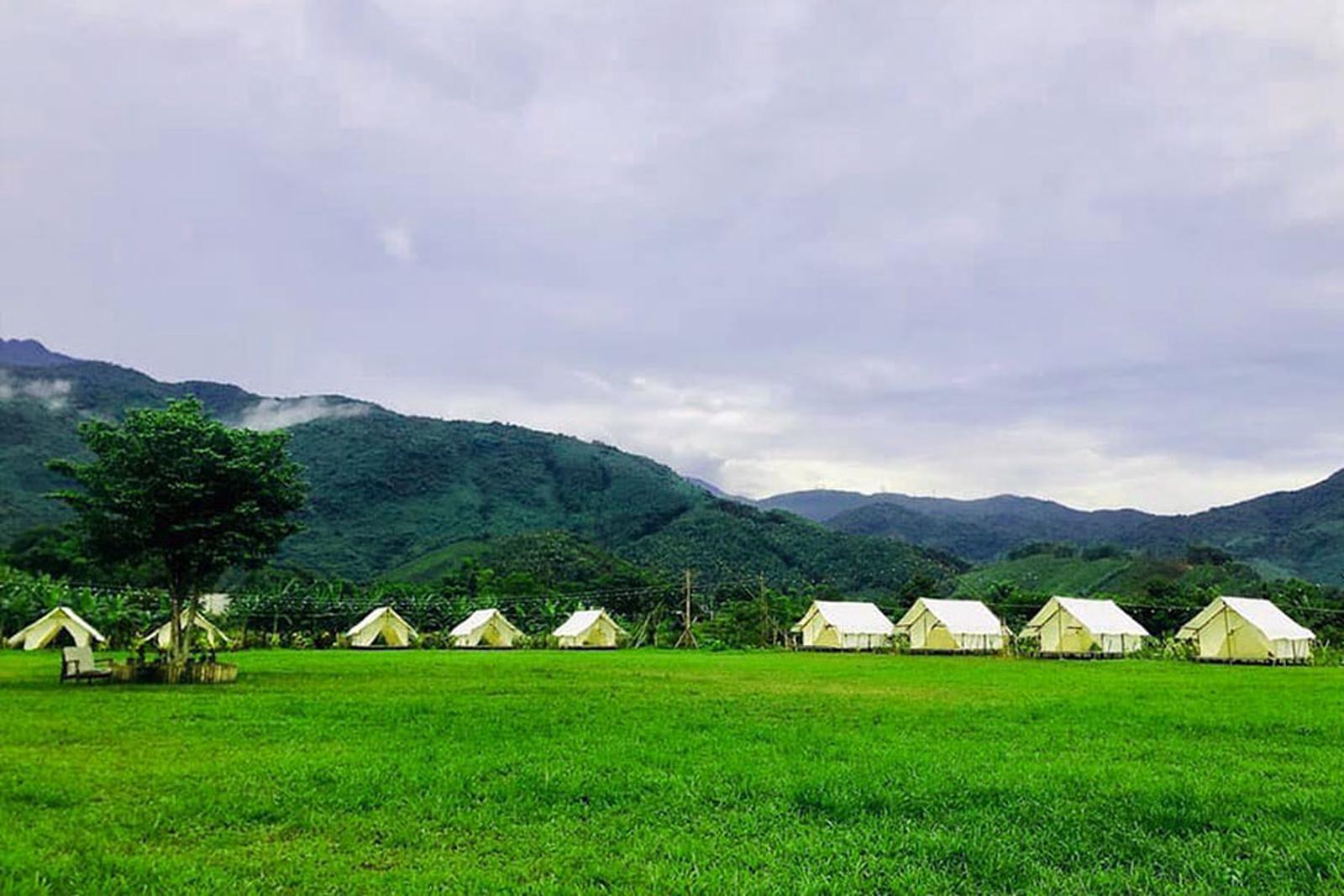 Du khách đến Hoà Bắc được dã ngoại, cắm trại, vui chơi tập thể. Ảnh: N.P