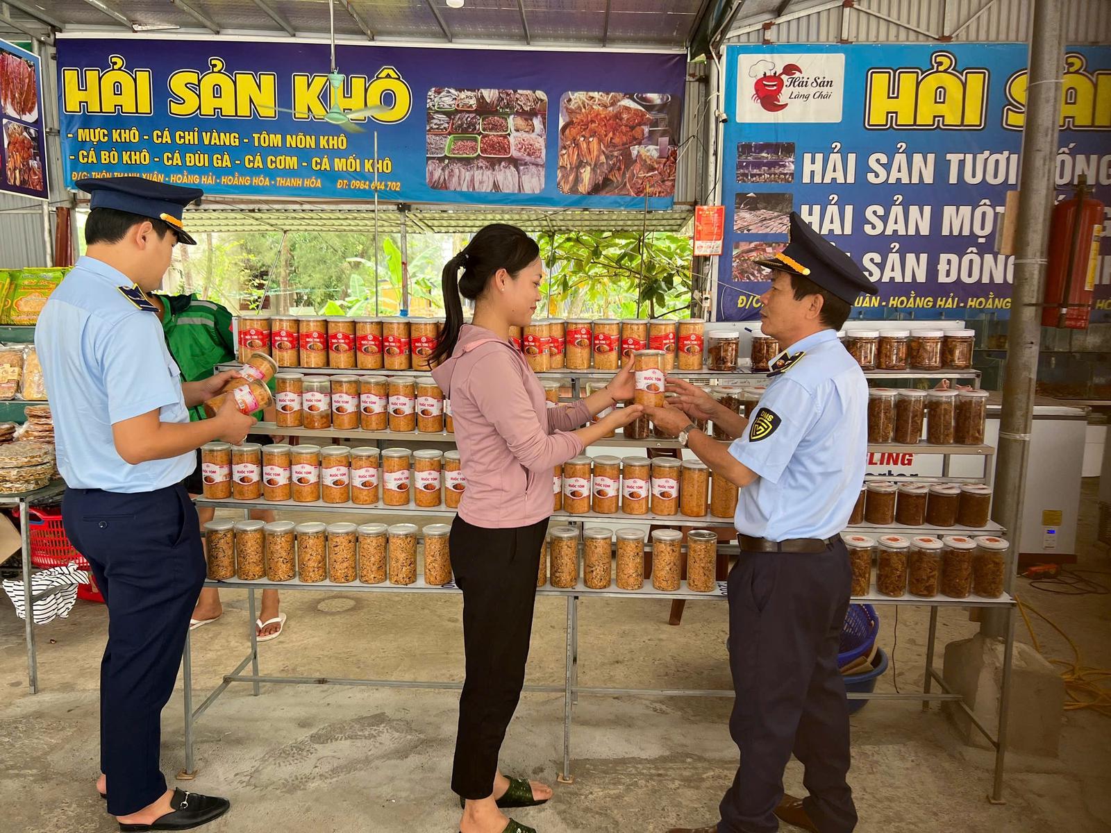Đội QLTT số 3 kiểm tra, kiểm soát hoạt động kinh doanh thực phẩm trên địa bàn. Ảnh: QLTT Thanh Hoá