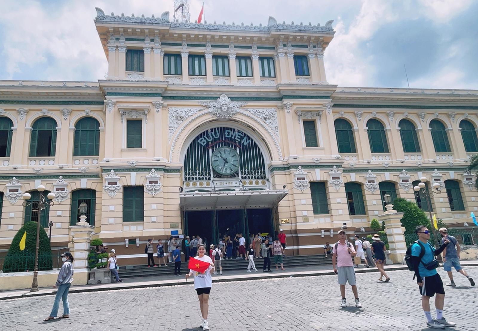 Du khách tham quan bưu điện thành phố. Ảnh: Thu Huyền