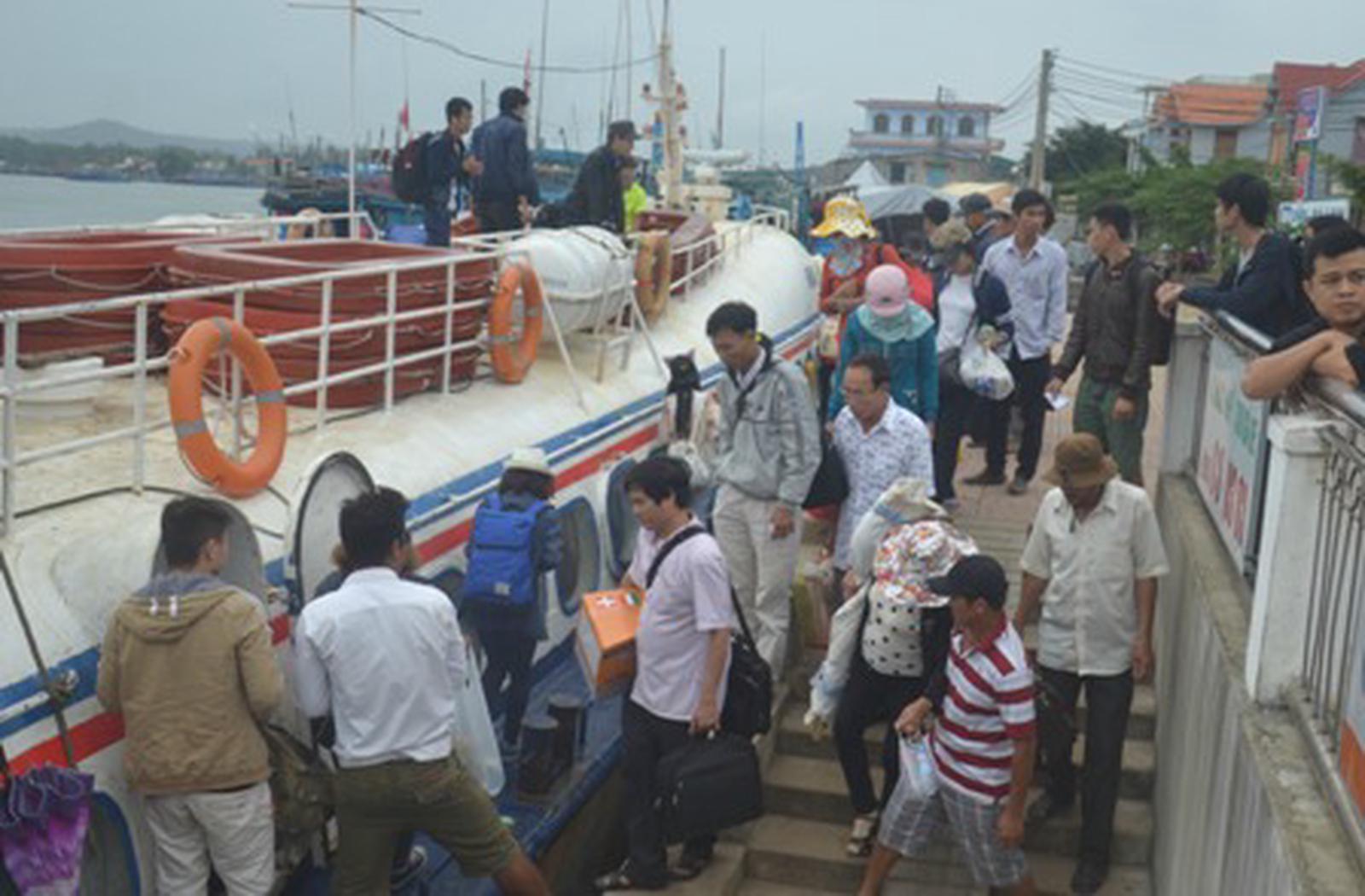 Du khách lên tàu cao tốc ra vào đảo Lý Sơn. Ảnh: Ngọc Phó
