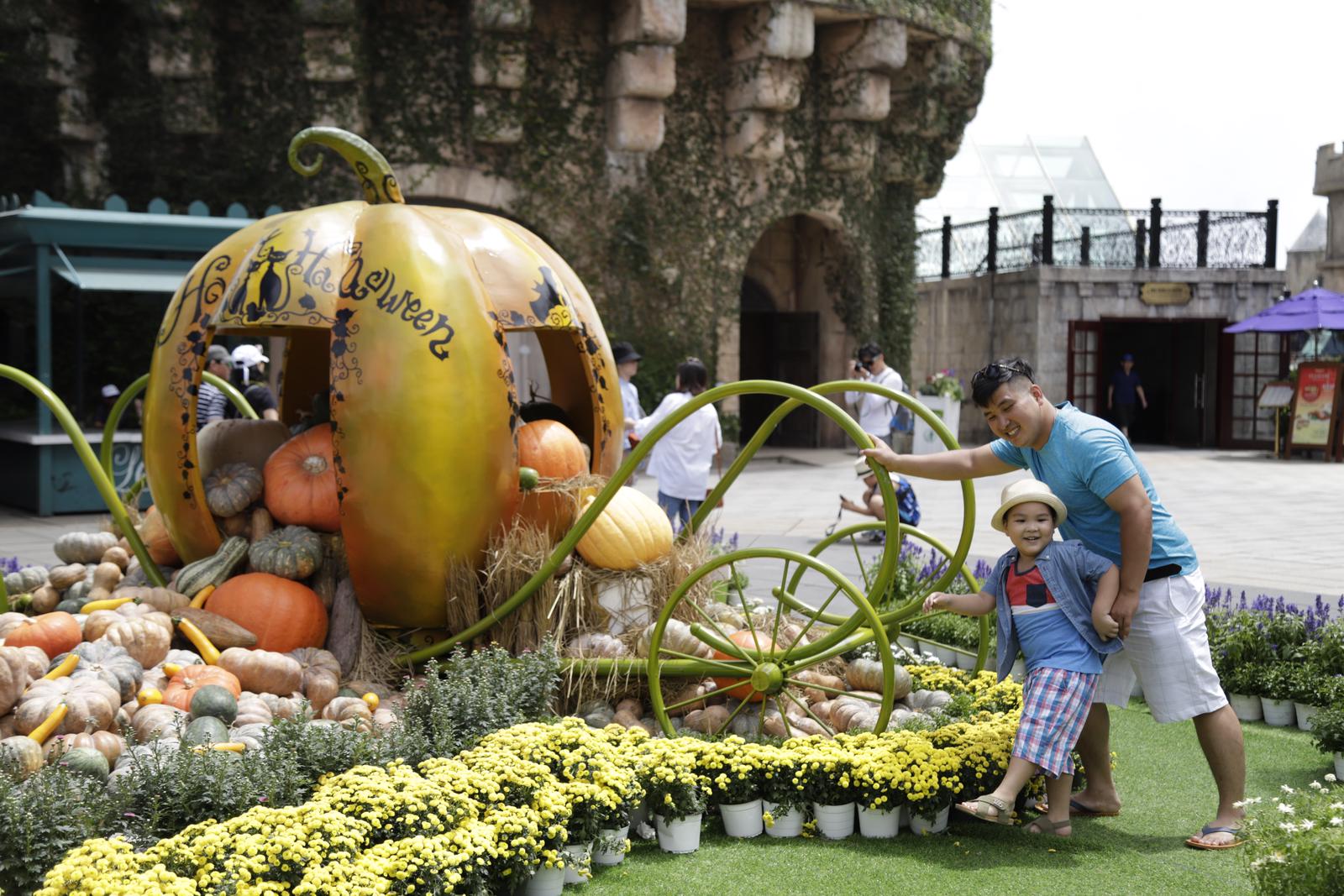 Khoác lên mình một diện mạo mới trong mùa Lễ hội Halloween, Bà Nà Hills trở nên rực rỡ hơn trong sắc vàng cam của hoa trái đặc trưng mùa lễ hội.