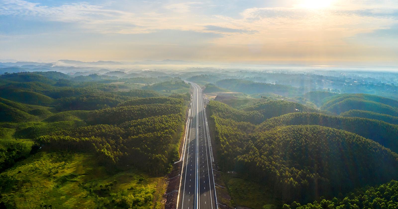 Vượt qua cao tốc Vân Đồn - Móng Cái được mệnh danh là tuyến cao tốc đẹp nhất Việt Nam với kỷ lục 32 cây cầu vượt biển, vượt sông suối, bạn sẽ được ngắm nhìn cảnh sắc miền biên giới bát ngát trải dài tới đường chân trời bên tấm thảm nhung xanh của núi rừng. Từ bình minh tới hoàng hôn, trong mỗi khoảnh khắc thiên nhiên đều được nhuộm những gam màu tráng lệ của vẻ đẹp bình yên, từ những thửa ruộng mênh mông đến eo biển thơ mộng hay lớp lớp núi đồi. Vào buổi tối, hàng ngàn ngọn đèn sáng rực khiến cao tốc đẹp như một dải ngân hà trong bức tranh Đông Bắc kiêu hùng.