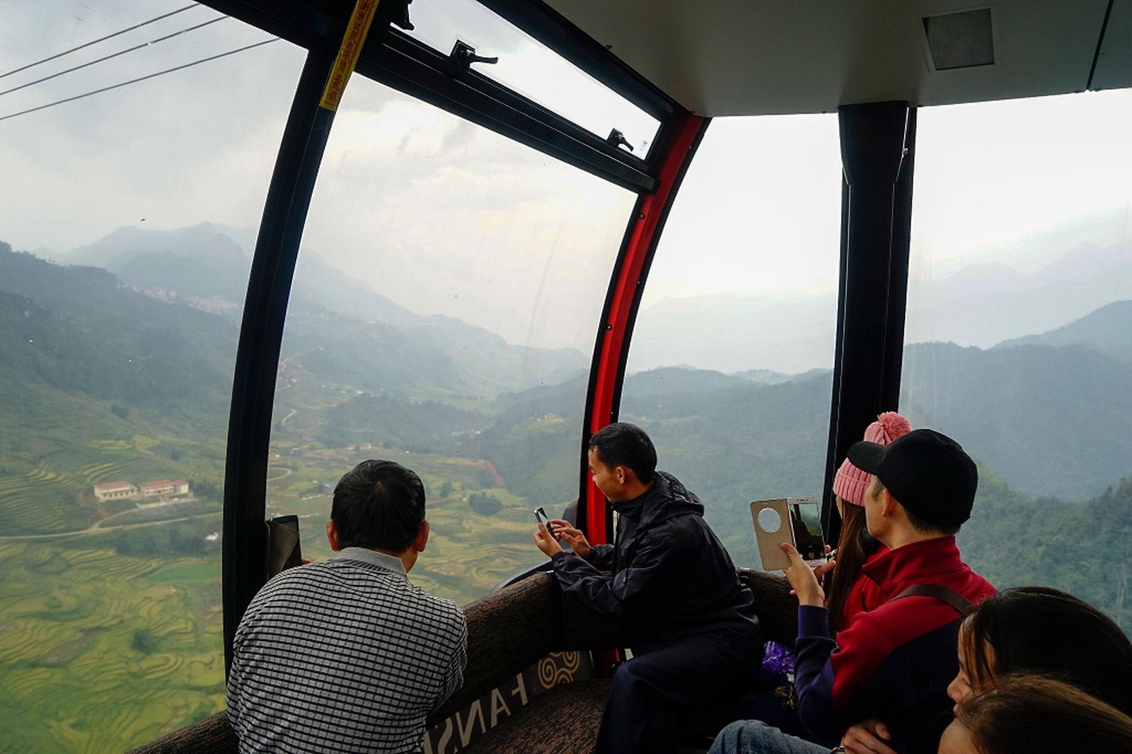 Nhiều du khách các năm trước từng tới Tây Bắc lang thang trên những triền ruộng bậc thang San Sả Hồ (Sa Pa) vào vụ lúa chín, nhưng năm nay vẫn quay trở lại chiêm ngưỡng khung cảnh theo cách hoàn toàn mới từ cabin cáp treo.