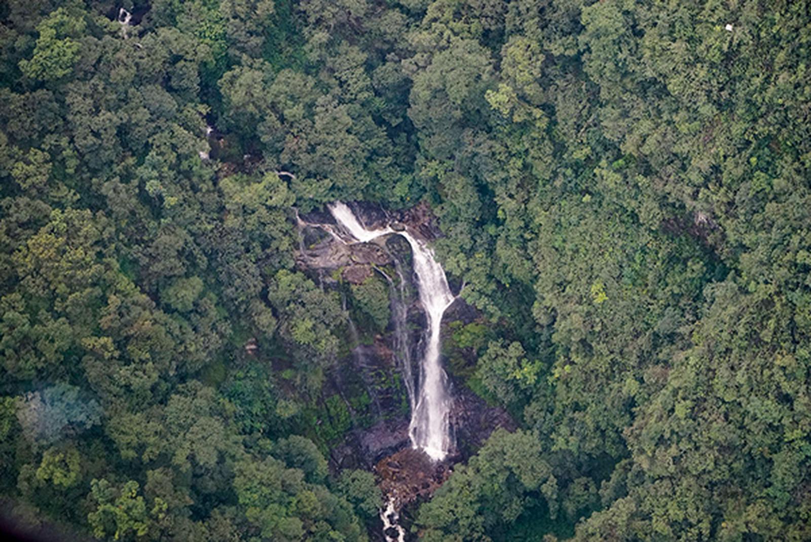 Vượt qua thung lũng, du khách lại tiếp tục trầm trồ với cánh rừng xanh thẳm và đâu đó là những con thác tung bọt trắng xóa.