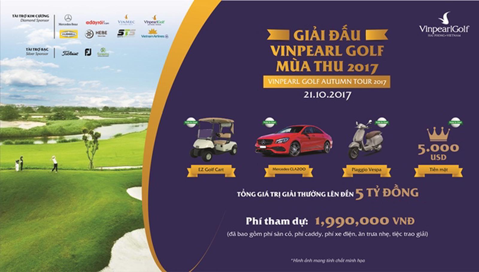 Theo chia sẻ từ Ban Tổ chức, Vinpearl Golf Autumn Tour 2017sẽ quy tụ hơn 120 gôn thủ tham gia tranh tài. Cơ cấu giải thưởng năm nay gồm cả hiện vật và hiện kim lên đến hơn 5 tỷ đồng cùng nhiều giải thưởng giá trị khác từ các nhà tài trợ như xe Mercedes CLA200, xe Piaggio Vespa, thẻ hội viên Vinpearl Golf Hải Phòng từ 1-2 năm, voucher nghỉ dưỡng trong quần thể Vinpearl…
