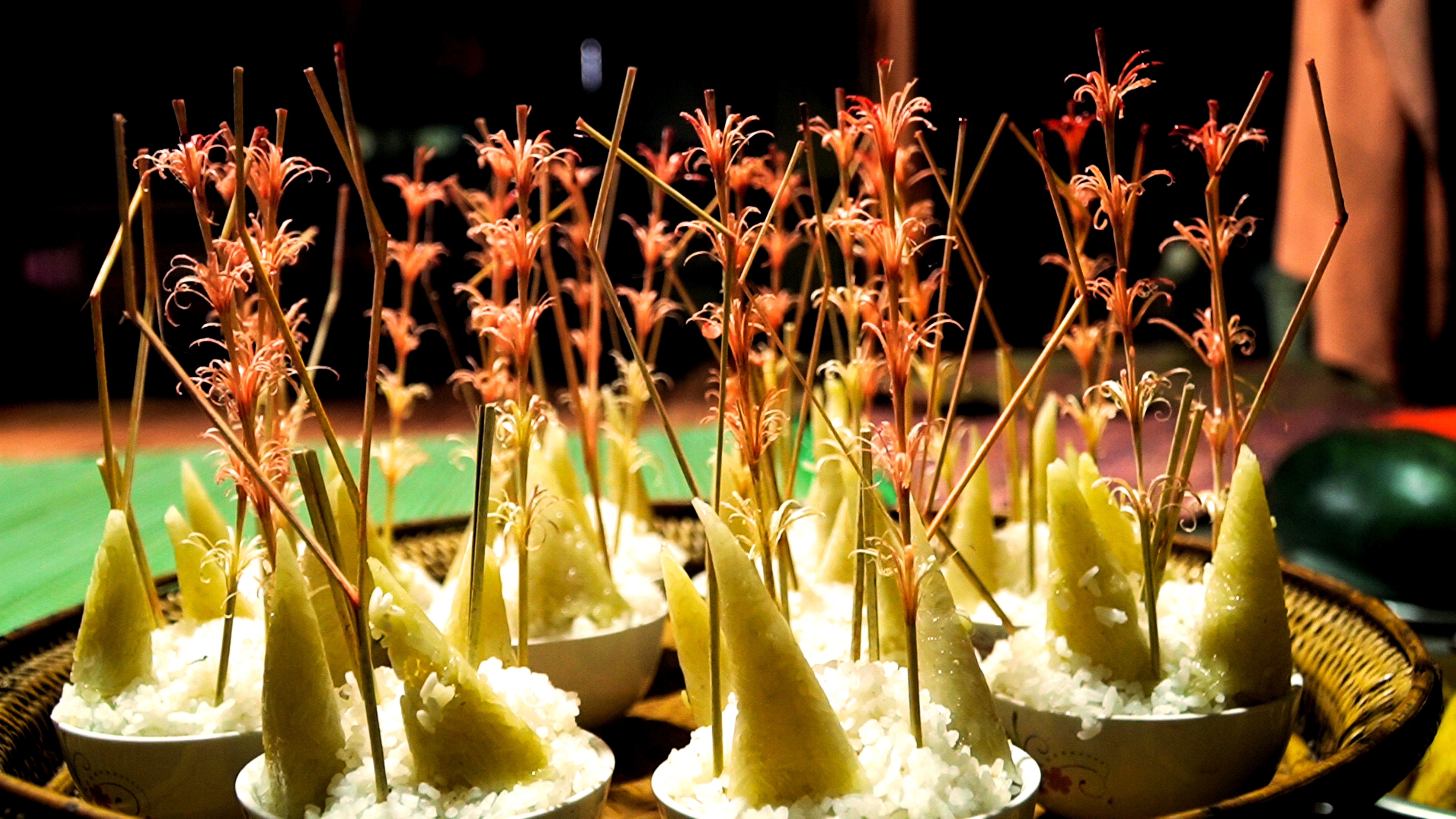 Xuân trên Trường Sơn không chỉ có hoa rừng, không chỉ có hơi thở căng tràn của đất trời, mà còn có hương của a quat lan nhẹ trong từng mái nhà sàn. Trong ánh lửa hồng bập bùng đêm giao thừa, những đôi bánh sừng trâu – a quat bày lên gian bếp, như lời chúc cho năm mới: trọn vẹn, khỏe mạnh và đủ đầy.