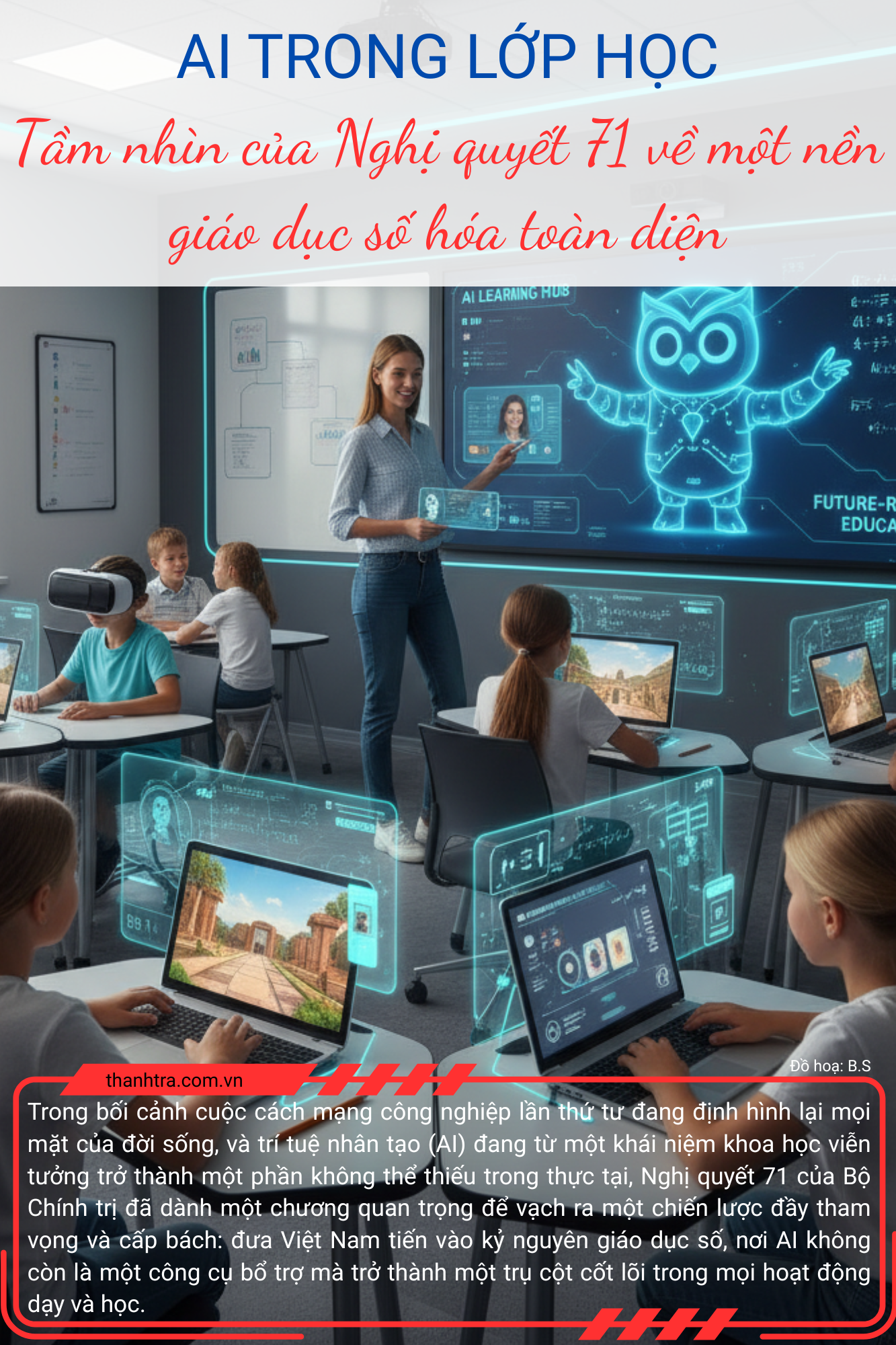 Với một chiến lược toàn diện, đi từ hạ tầng, công cụ đến con người, Nghị quyết 71 đang mở ra một chương mới đầy hứa hẹn và thách thức cho giáo dục Việt Nam. Đây là một sự đầu tư chiến lược cho tương lai, không chỉ để hiện đại hóa ngành Giáo dục, mà còn để kiến tạo nên một thế hệ công dân số có đủ bản lĩnh, trí tuệ và sự sáng tạo, sẵn sàng đưa đất nước bứt phá trong kỷ nguyên của trí tuệ nhân tạo.