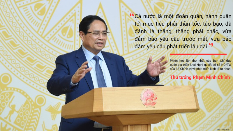 Trong bài phát biểu tại Phiên họp lần thứ nhất của Ban Chỉ đạo quốc gia triển khai Nghị quyết số 68-NQ/TW của Bộ Chính trị về phát triển kinh tế tư nhân, người đứng đầu Chính phủ đã nhấn mạnh tầm nhìn coi "cả nước là một đoàn quân", trong đó mỗi bộ ngành, địa phương, doanh nghiệp và người dân là một người lính trên mặt trận phát triển kinh tế. Hình ảnh này không chỉ là một khẩu hiệu mà còn là một tư duy chiến lược, đòi hỏi sự đồng lòng, quyết tâm cao độ và hành động nhịp nhàng, kỷ luật trên quy mô toàn quốc.