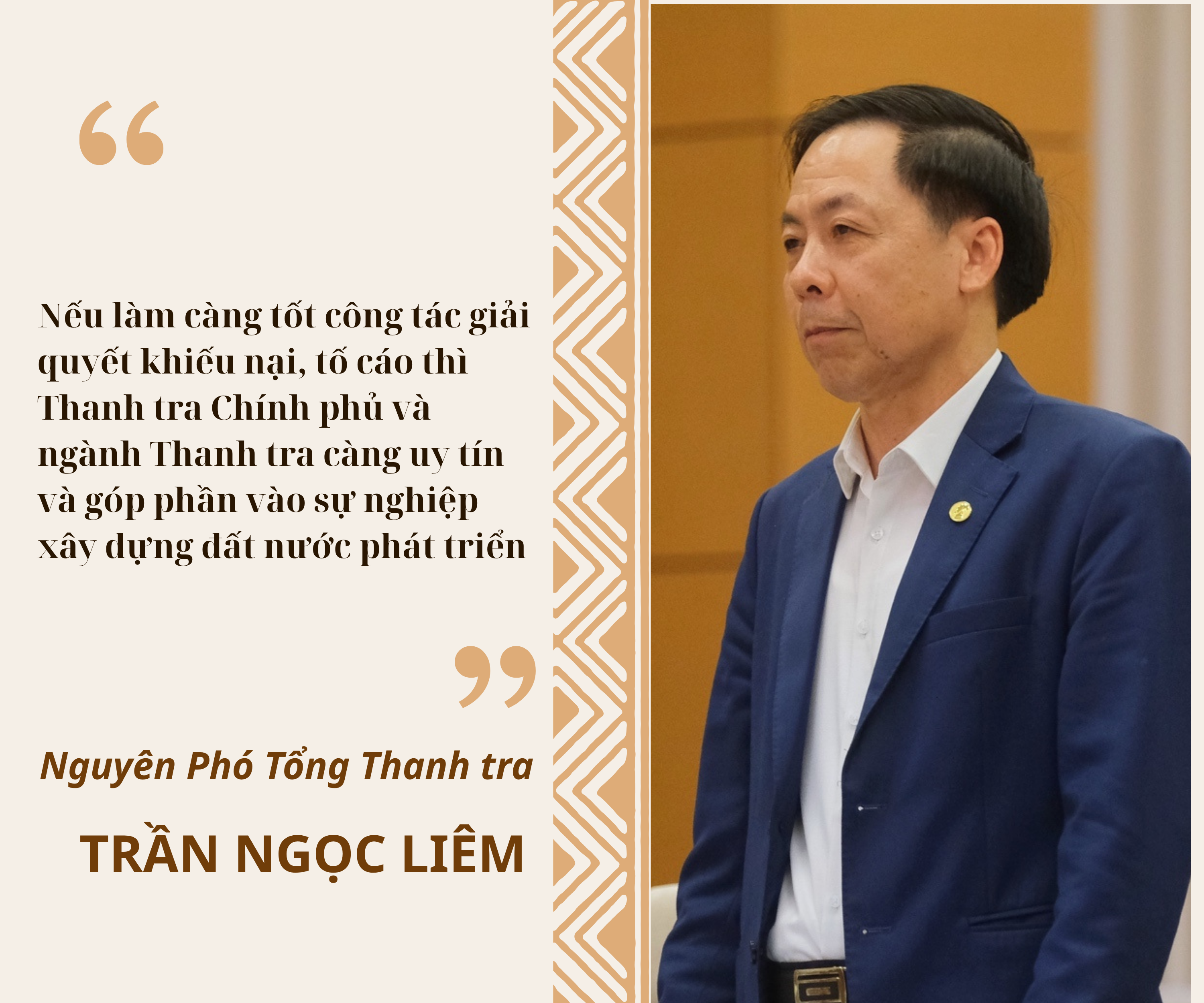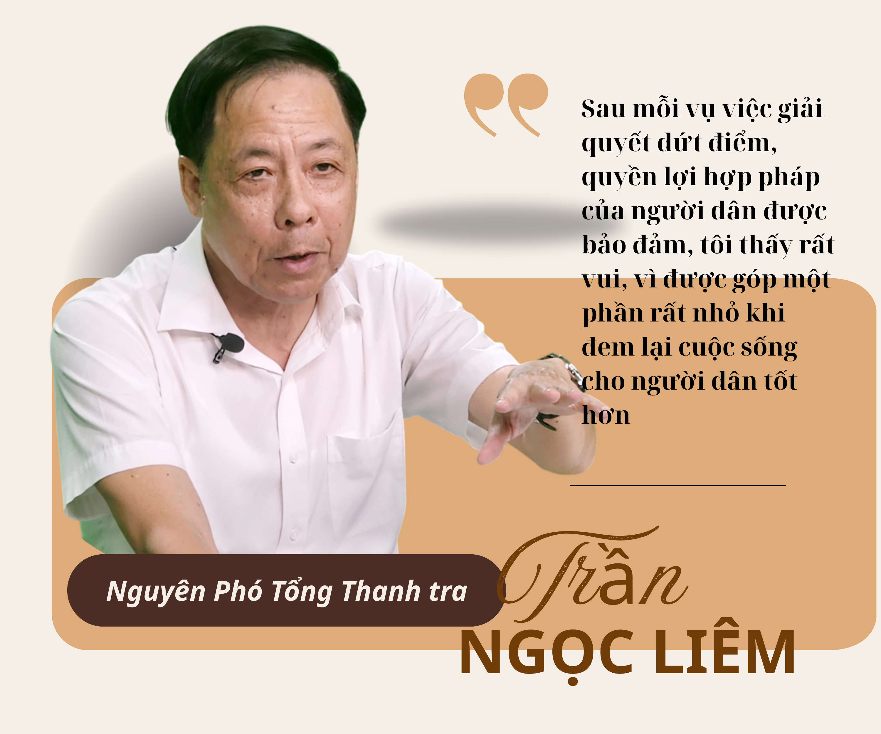 Trải qua nhiều cương vị công tác trong ngành Thanh tra, trực tiếp chỉ đạo giải quyết hàng chục vụ việc khiếu nại, tố cáo phức tạp, nguyên Phó Tổng Thanh tra Trần Ngọc Liêm hiểu rõ những áp lực và yêu cầu đặc thù của công tác này.