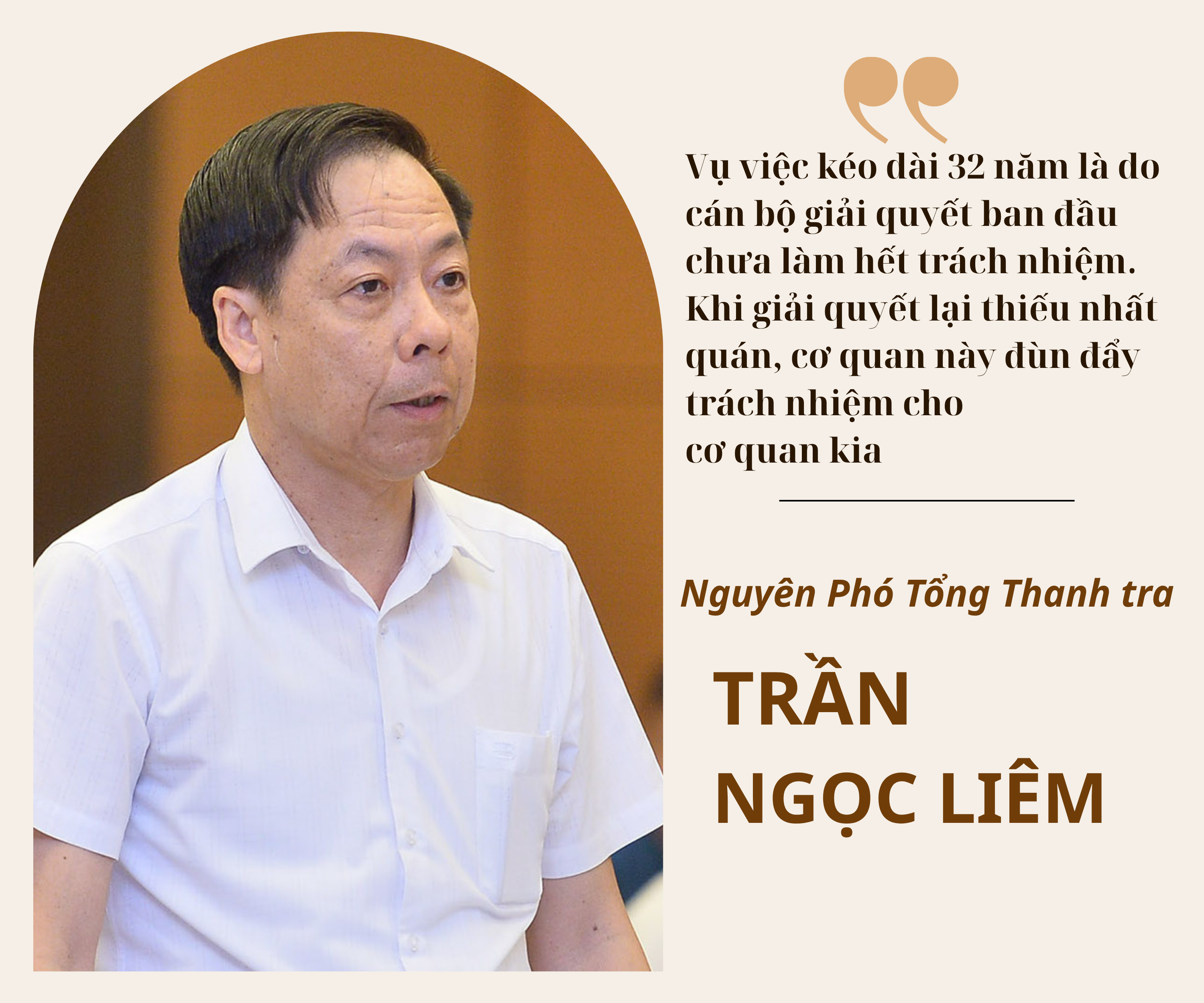 - Ông Trần Ngọc Liêm: Thực sự vụ việc này rất đơn giản. Tổ công tác của Thanh tra Chính phủ khi đó vào cuộc làm chỉ 15 ngày. Vụ việc này kéo dài là do cán bộ giải quyết ban đầu chưa làm hết trách nhiệm. Khi giải quyết lại thiếu nhất quán, cơ quan này đùn đẩy trách nhiệm cho cơ quan kia.