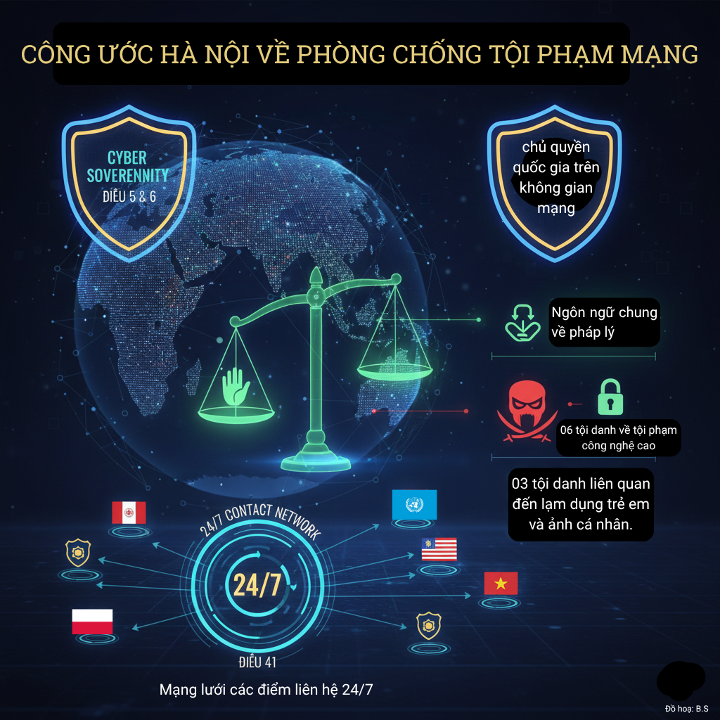 Thứ hai, mở rộng hợp tác quốc tế thực chất và hiệu quả. Tội phạm mạng về bản chất là xuyên biên giới. Một hacker ngồi ở quốc gia này có thể dễ dàng tấn công một hệ thống ngân hàng ở quốc gia khác. Nếu không có cơ chế hợp tác quốc tế, việc điều tra sẽ đi vào ngõ cụt. Công ước Hà Nội, đặc biệt là Chương V, đã giải quyết triệt để vấn đề này.
