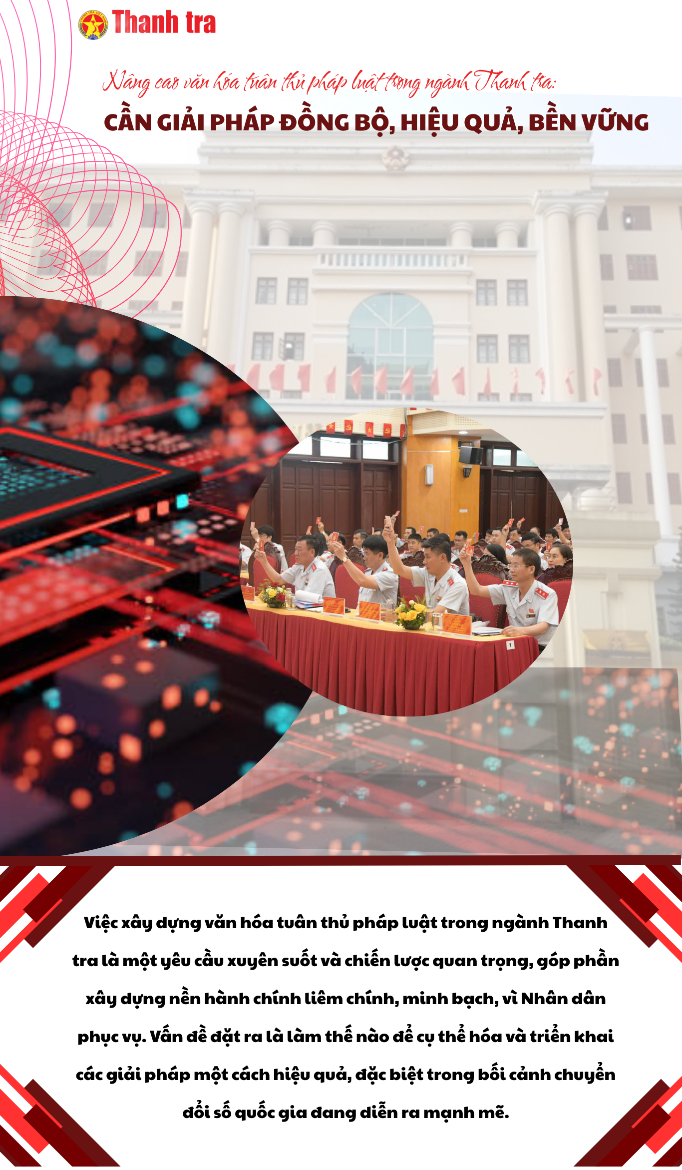 Thanh tra Chính phủ cần nghiên cứu, thể chế hoá và chuẩn hoá chuẩn mực tuân thủ để ban hành đồng bộ các quy định, quy trình nghiệp vụ cụ thể gắn với trách nhiệm giải trình, có phân công phân nhiệm và chế tài rõ ràng, minh bạch; bảo đảm mỗi cán bộ, công chức thanh tra đều nhận thức rõ, làm đúng, xây dựng văn hóa tuân thủ pháp luật trong ngành Thanh.