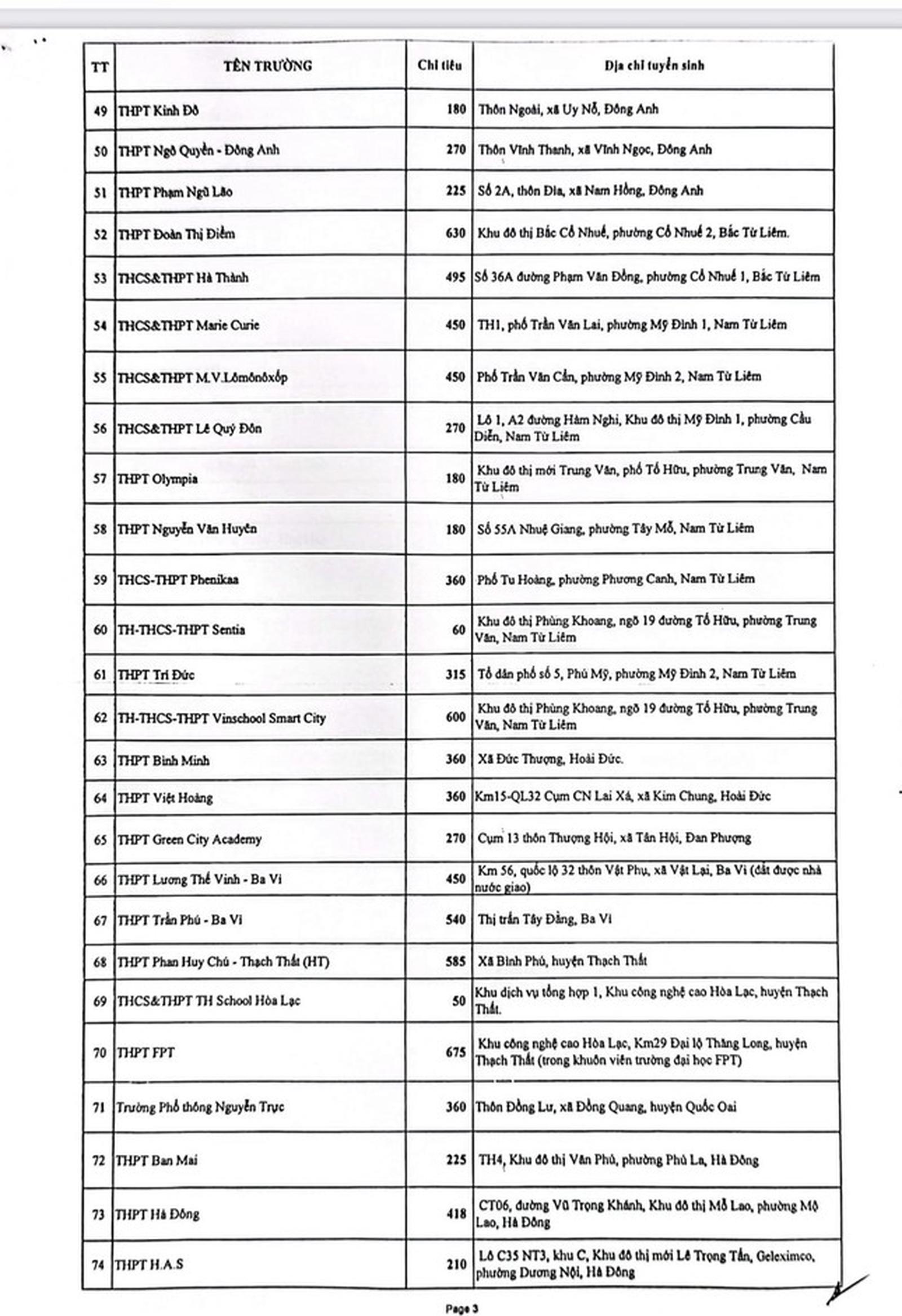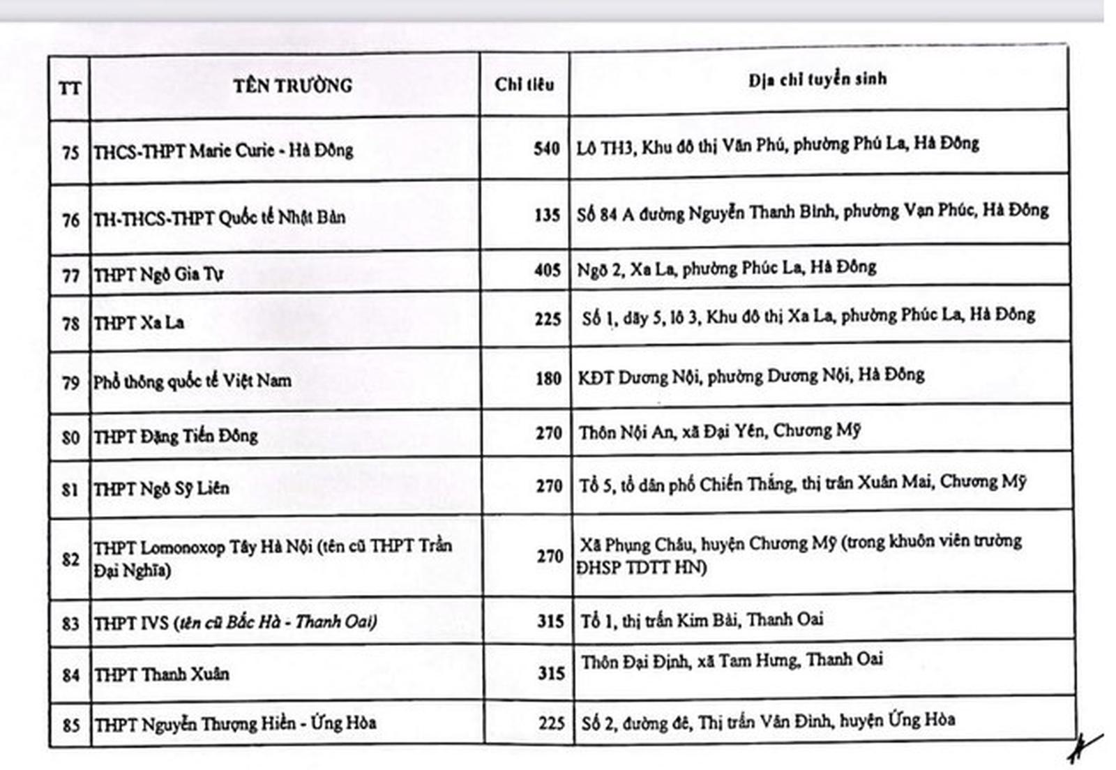 Toàn TP Hà Nội hiện có hơn 100 trường THPT tư thục. Tuy nhiên, căn cứ kết quả kiểm tra điều kiện tuyển sinh và các điều kiện theo quy định, Sở Giáo dục và Đào tạo Hà Nội quyết định giao chỉ tiêu tuyển sinh cho 85 trường tư thục.