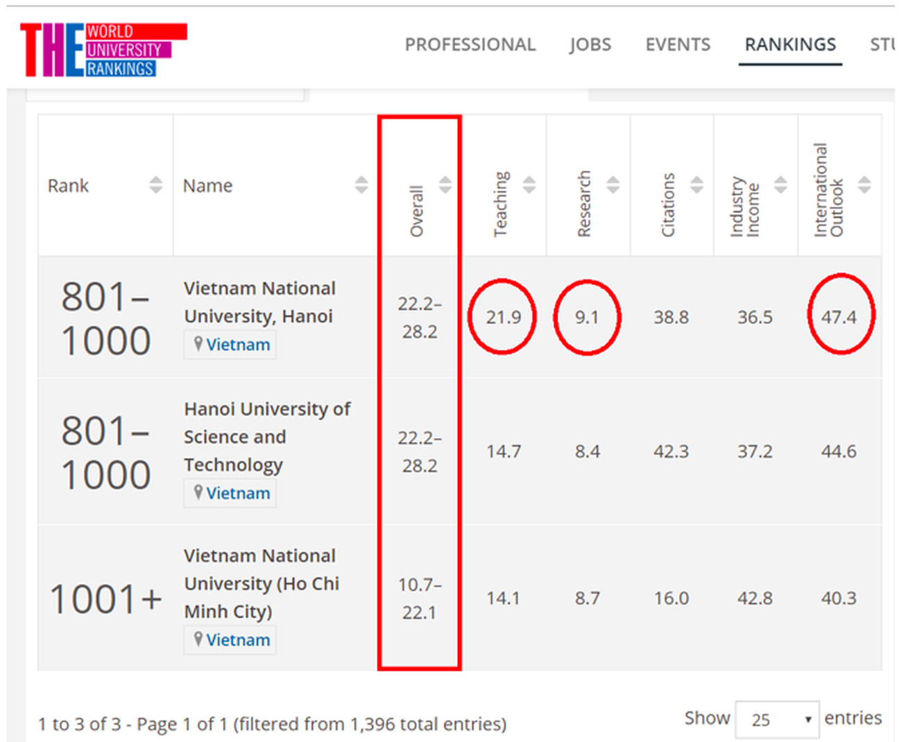 Năm nay, THE xếp hạng cho 1.395 cơ sở giáo dục đại học trên tổng số 1.820 cơ sở giáo dục đại học tham gia.