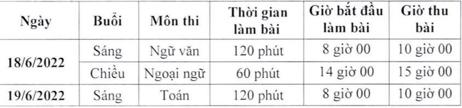 Các bài thi môn Toán và Ngữ văn thi theo hình thức tự luận, thời gian làm bài là 120 phút/bài thi.