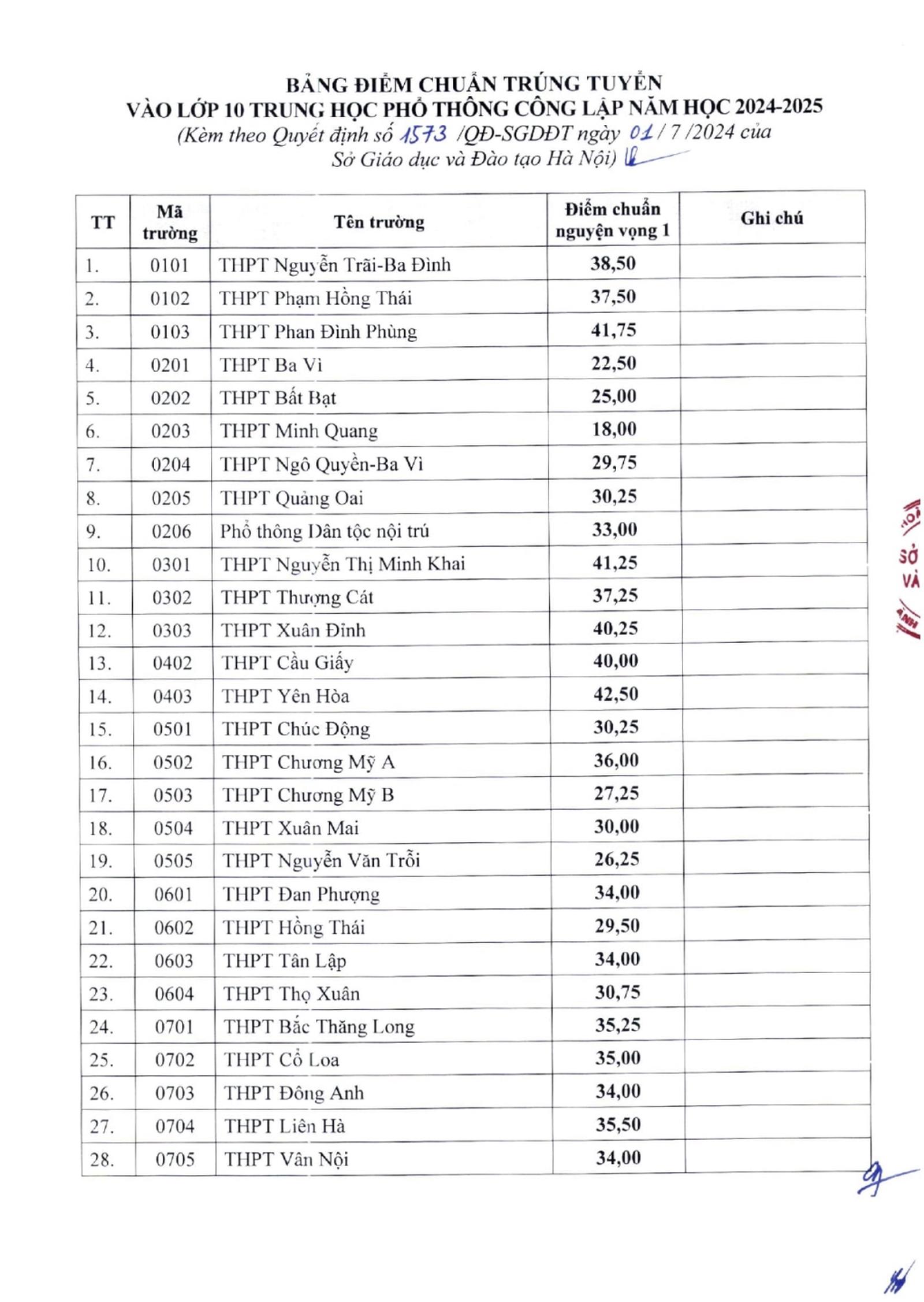 Chi tiết điểm chuẩn trúng tuyển vào lớp 10 THPT công lập năm học 2024 - 2025 của từng trường như sau: