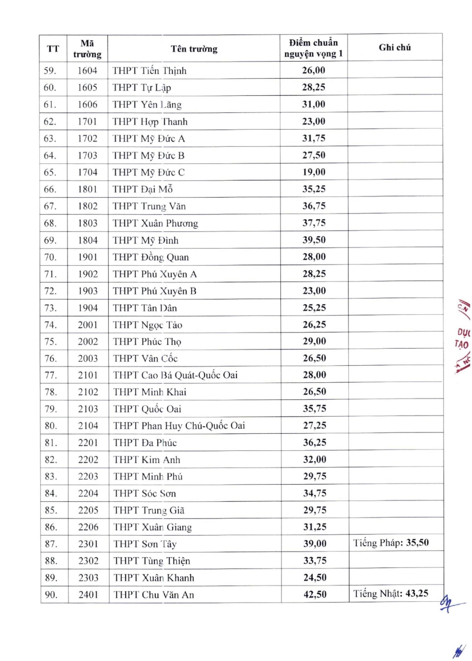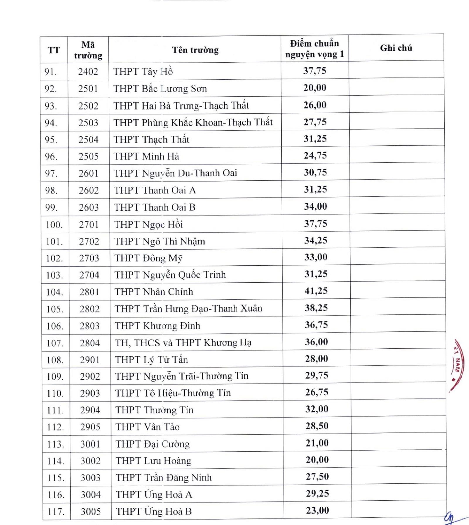 (Thanh tra) - Cuối giờ chiều ngày 1/7, Sở Giáo dục và Đào tạo Hà Nội đã công bố điểm chuẩn vào lớp 10 của 117 trường THPT công lập trên địa bàn TP. Theo đó, năm nay Hà Nội có 3 trường có điểm chuẩn vào lớp 10 cao nhất cùng 42,5 điểm.