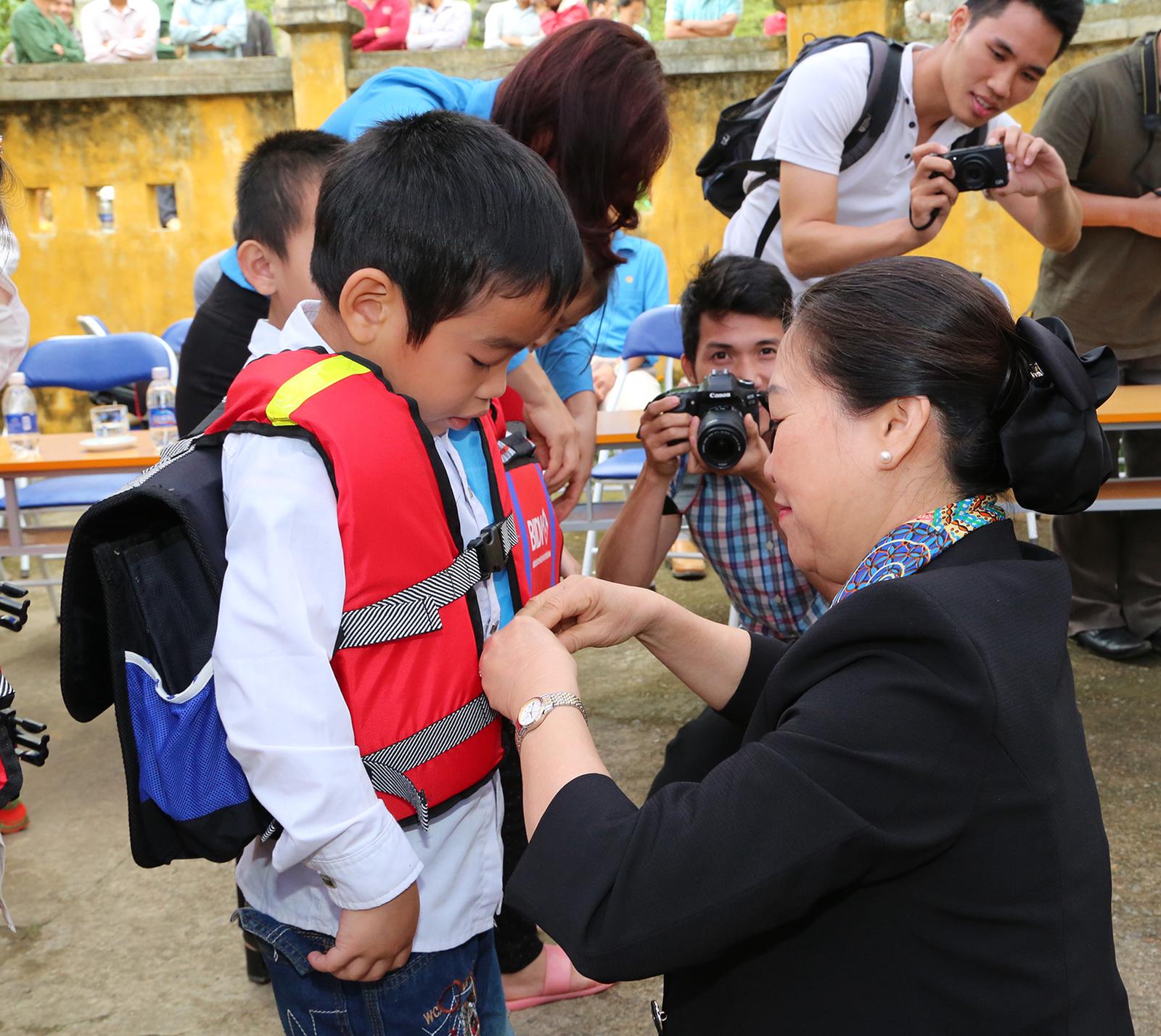 Những chiếc cặp phao không chỉ là món quà quý dành cho các em học sinh mà còn là đem lại niềm an tâm cho các bậc phụ huynh và thầy cô giáo mỗi khi trẻ em đi học qua sông, qua suối, nhất là khi mùa lũ về. Bà Hồng còn cho biết, hằng năm, BIDVcòn đồng hành cùng Quỹ Bảo trợ Trẻ em Công đoàn Việt Nam trong các chương trình khác như: tặng học bổng, chương trình tết sum vầy, chương trình cùng em tới trường, chương trình tặng quà cho bệnh nhi .v.v.