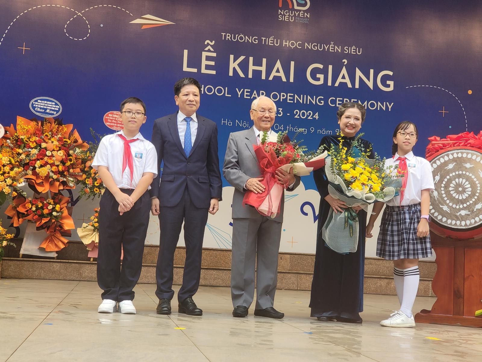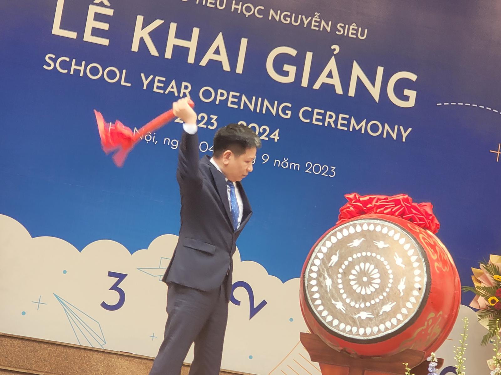 Chủ tịch Hội đồng Nhà trường, Bí thư Đảng uỷ Nguyễn Vĩnh Hạnh đã đánh trống khai trường. Những tiếng trống vang lên nhắc nhở thầy và trò Nguyễn Siêu cùng hướng về phía trước: “Thầy mẫu mực, trò chăm ngoan, học giỏi” để cùng kiến tạo một tương lai “vì hạnh phúc gia đình, vì tiến bộ xã hội”.