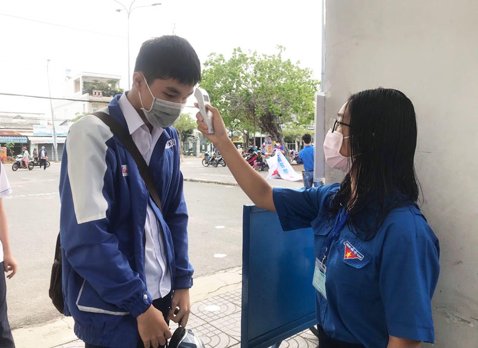 Tại các điểm thi, những đoàn viên thanh niên đã tích cực hỗ trợ mùa thi trong công tác kiểm tra thân nhiệt cho các thí sinh trước khi bước vào phòng thi. Tất cả các thí sinh đều đeo khẩu trang khi dự thi.