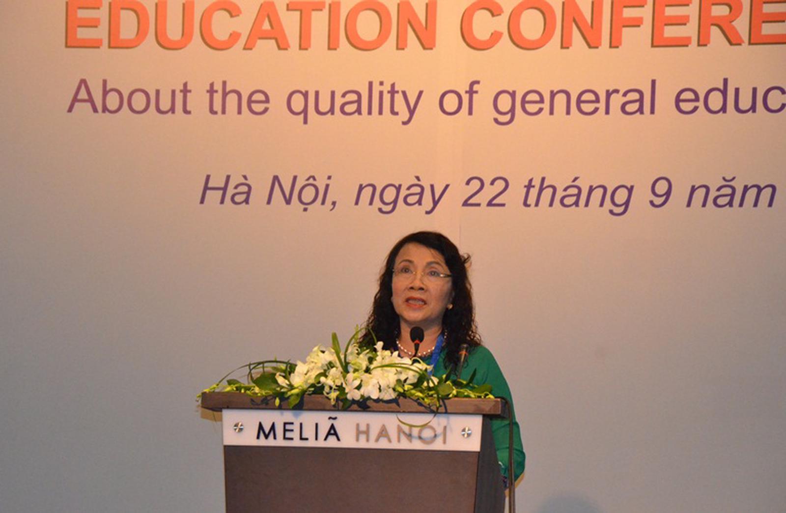 Bà Nguyễn Thị Nghĩa - Thứ trưởng Bộ Giáo dục và Đào tạo phát biểu tại hội thảo. Ảnh: TTH
