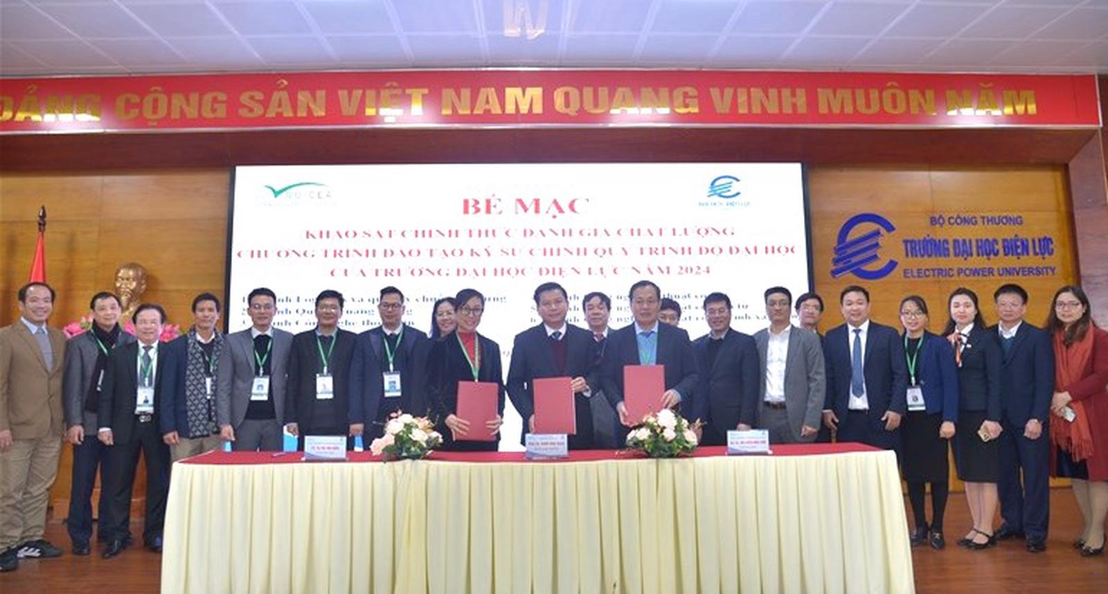 Kết thúc buổi bế mạc, đại diện Đoàn đánh giá ngoài, Trung tâm KĐCLGD - ĐHQGHN và Trường Đại học Điện lực đã ký biên bản ghi nhớ hoàn thành đợt khảo sát chính thức đánh giá chất lượng chương trình đào tạo kỹ sư chính quy trình độ đại học của Trường Đại học Điện lực.