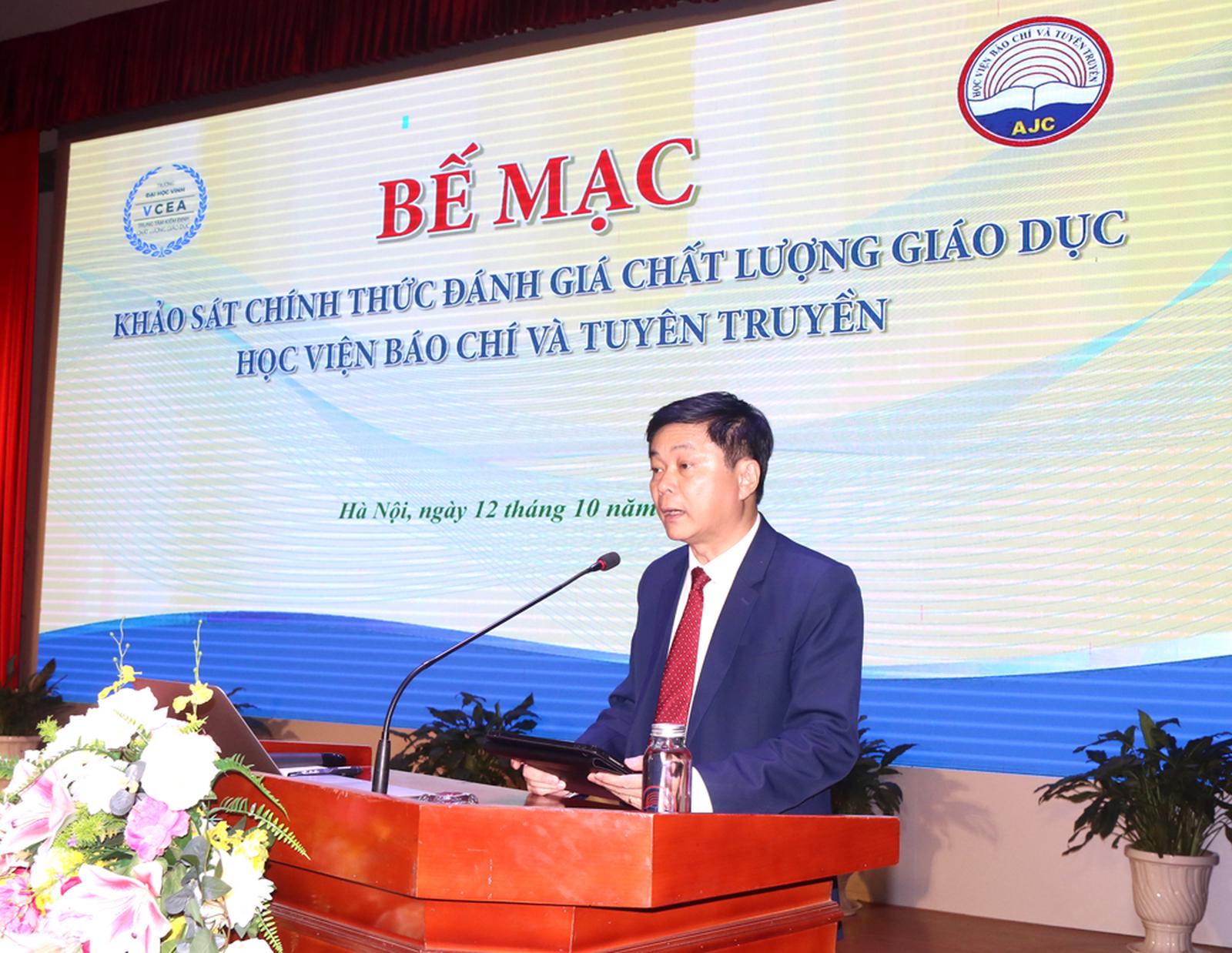 Phát biểu bế mạc đợt khảo sát chính thức đánh giá chất lượng giáo dục Học viện Báo chí và Tuyên truyền, TS Nguyễn Đình Huy, Phó Giám đốc Trung tâm Kiểm định chất lượng giáo dục, Đại học Vinh đã ghi nhận và biểu dương sự nỗ lực nâng cao uy tín, chất lượng giáo dục của Học viện trong thời gian qua.