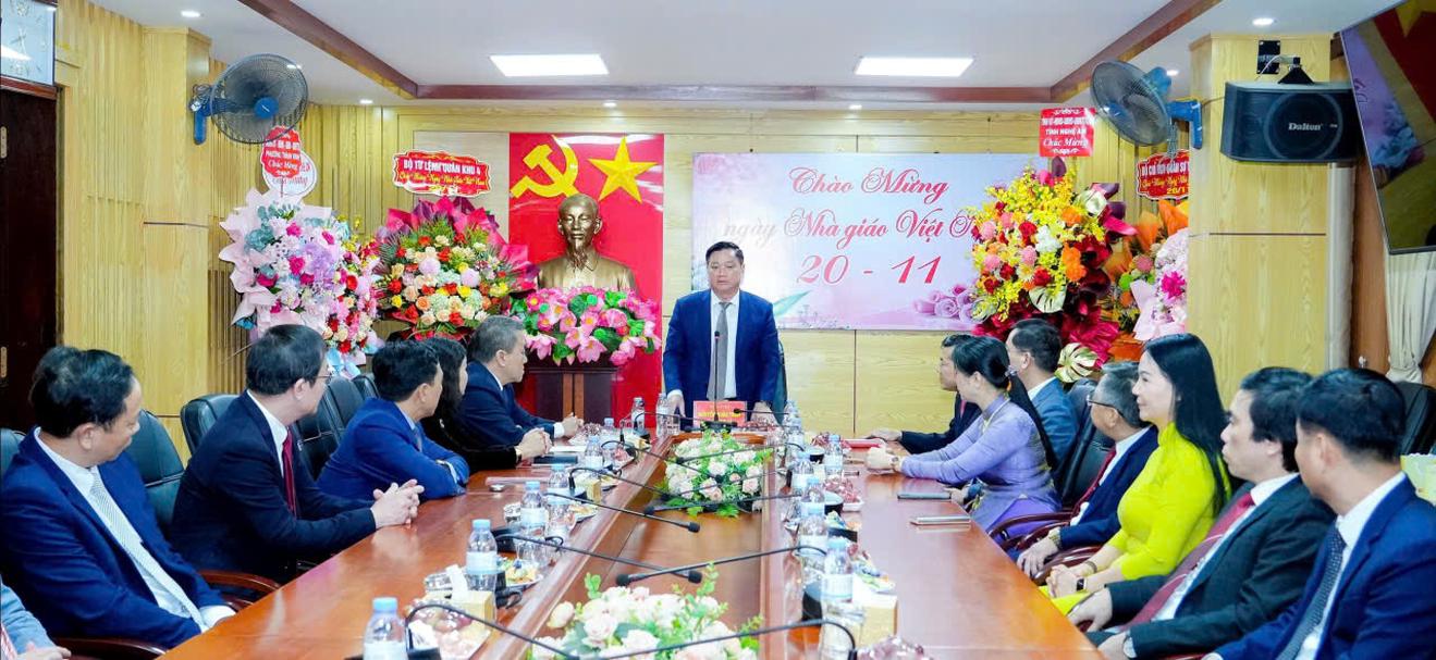 (Thanh tra) - Sáng 19/11, Bí thư Tỉnh ủy Nghệ An cùng đoàn công tác của tỉnh đã đến thăm, chúc mừng Sở Giáo dục và Đào tạo nhân kỷ niệm 43 năm Ngày Nhà giáo Việt Nam (20/11/1982 - 20/11/2025).